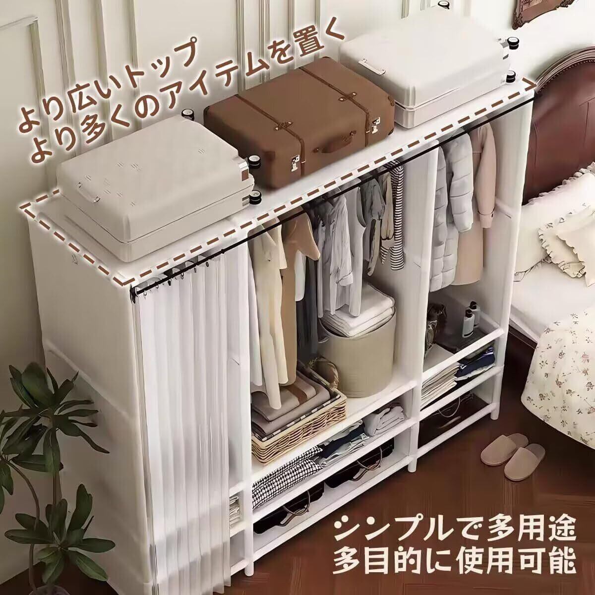 【防塵・防水・防汚】クローゼットのカバーは完全にカーテン式で、ほこりや湿気を効果的に隔離し、衣類を清潔で新品の状態に保ちます。カーテンはスムーズに開閉し、取り出しも非常に便利です。整理整頓された美しい収納空間を実現します。