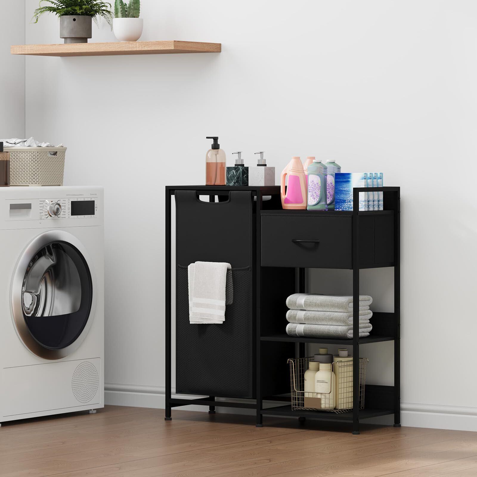 【組み立て簡単多機能棚】洗濯かごはわかりやすい説明書に従って簡単に取り付けられます。 美しい外観で、寝室、バスルーム、寮に最適です。