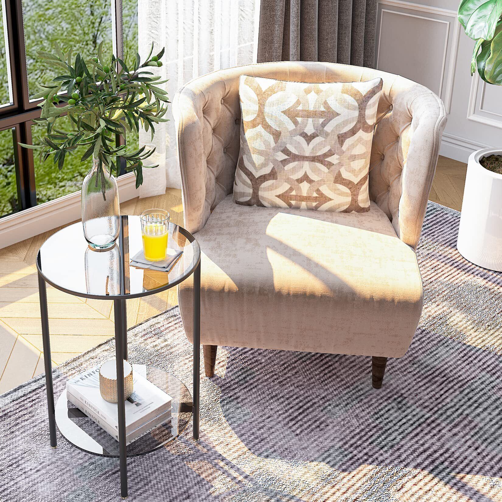 サイドテーブル 丸 ガラス ベッドサイドテーブル ナイトテーブル 2段 ベッド横 ソファ横 幅40×奥行40×高さ57.5㎝ ミニテーブル 丸型 おしゃれ