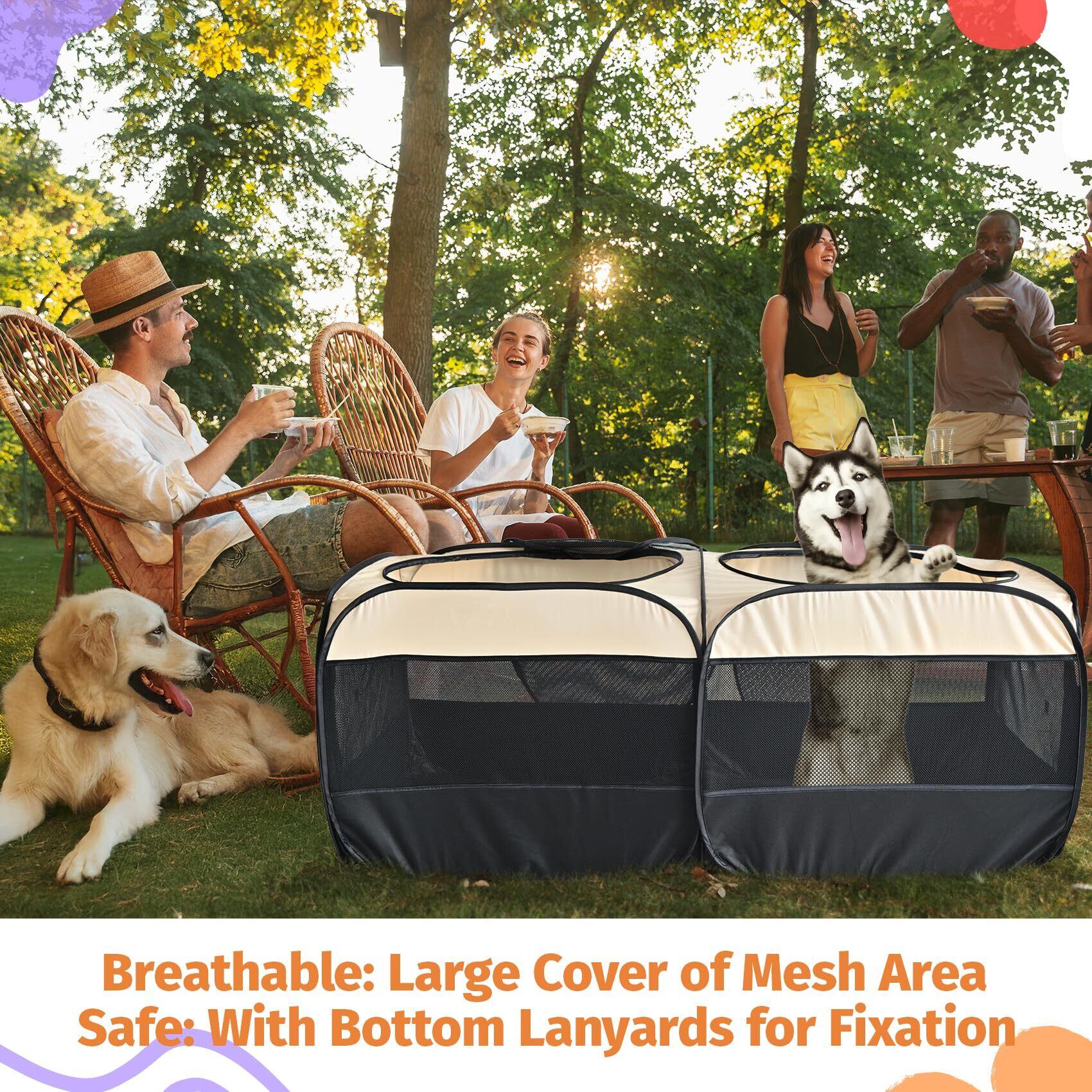 2WAYドッグプレイペン 58インチ ポップアップ猫・小型ペット用プレイペン 組立不要 室内外兼用 子猫エンクロージャー/ケージ 持ち運びできる子犬テント・クレート・ケンネル 小動物対応(仕切りなし一体型スペース)