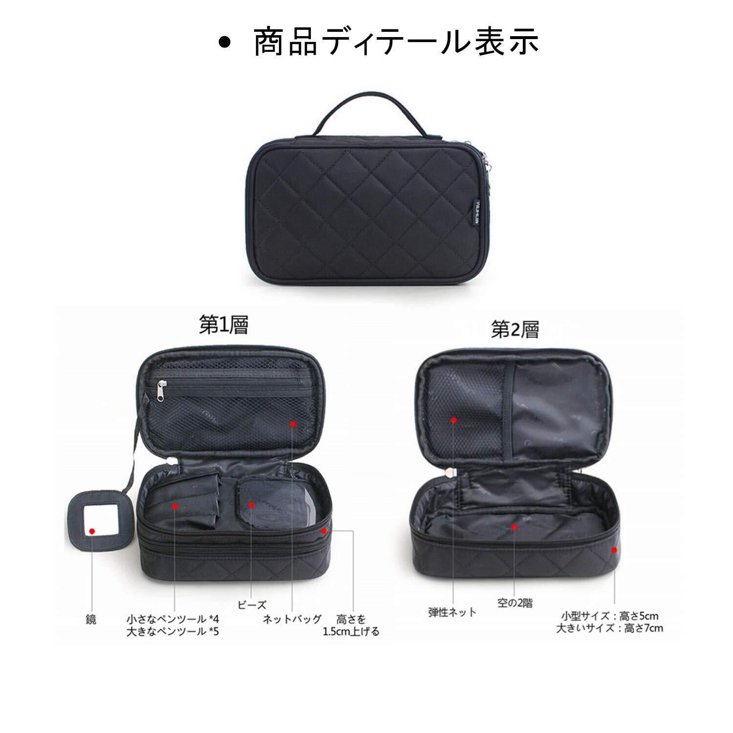 メイクボックス メイクポーチ コスメティックバッグ 旅行ポーチ プロ用 メイクポーチ 化粧ポーチ ダブルレイヤー PC周辺小物整理 トラベルキットパック 小物用収納ポーチ ドレッサーミラー付き 超軽量 多機能 大容量 (大,ブラック)