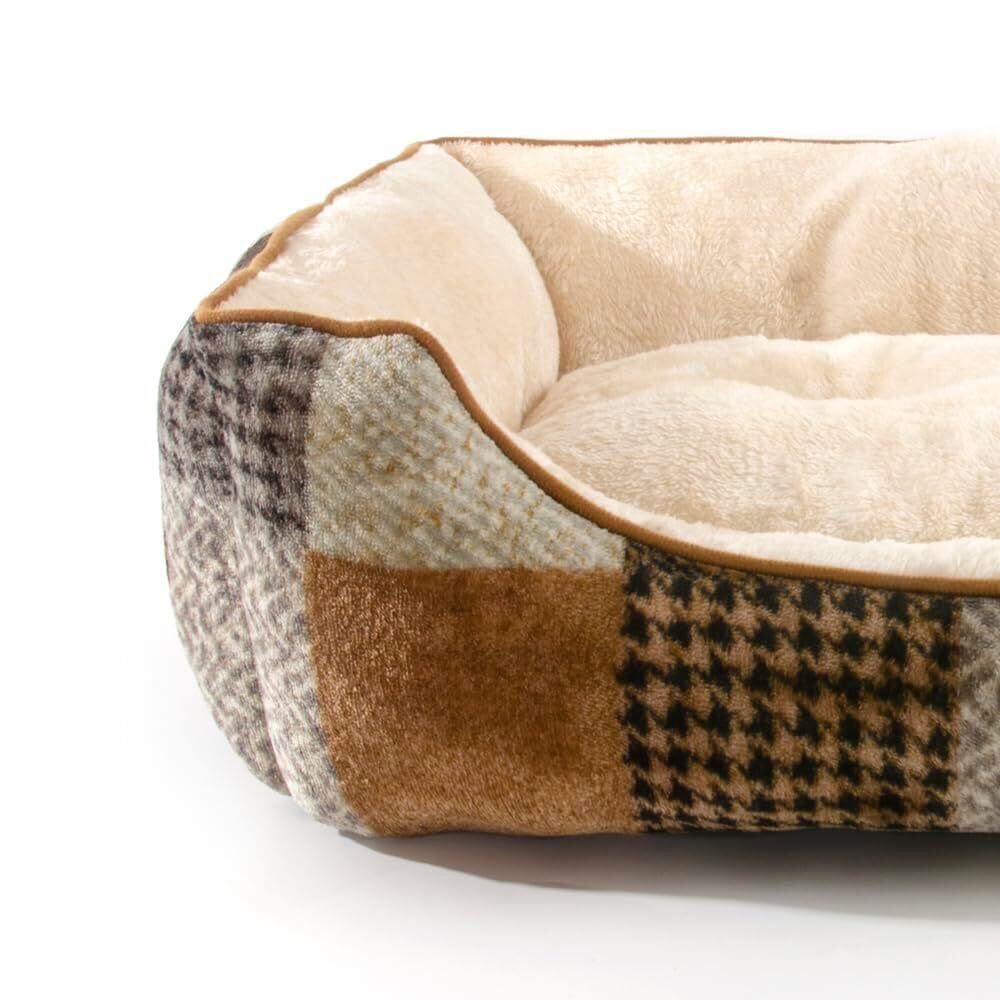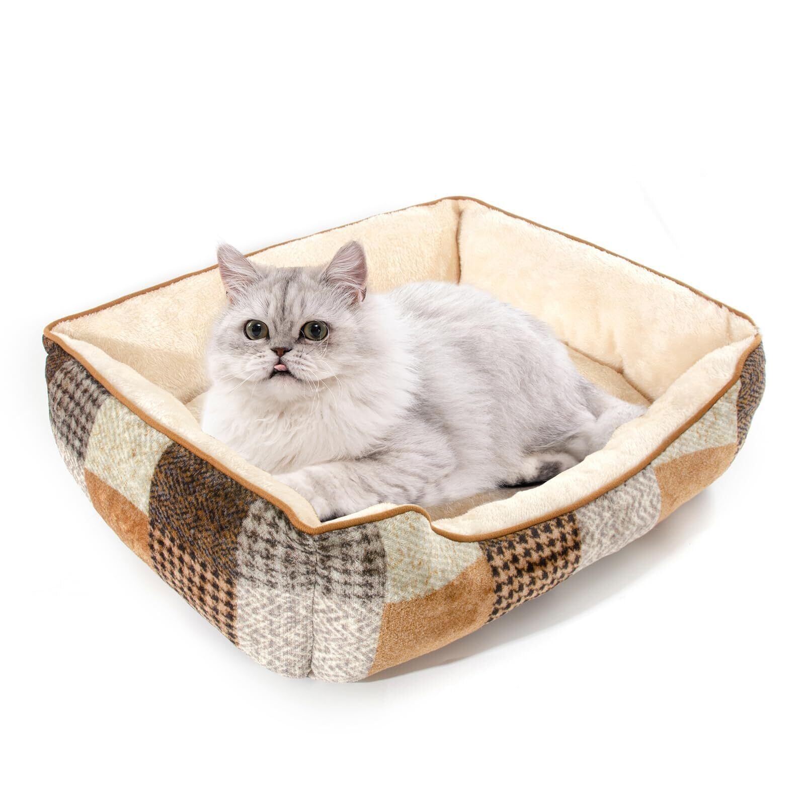 JEMA ペットベッド 猫ベッド 犬 クッション ペットソファー 小型/中型犬用 猫用 モチモチ3D綿 ふわふわ 暖か 通年 洗える 滑りにくい裏生地 フランネル L チエック ブラウン 外径60x50x18cm