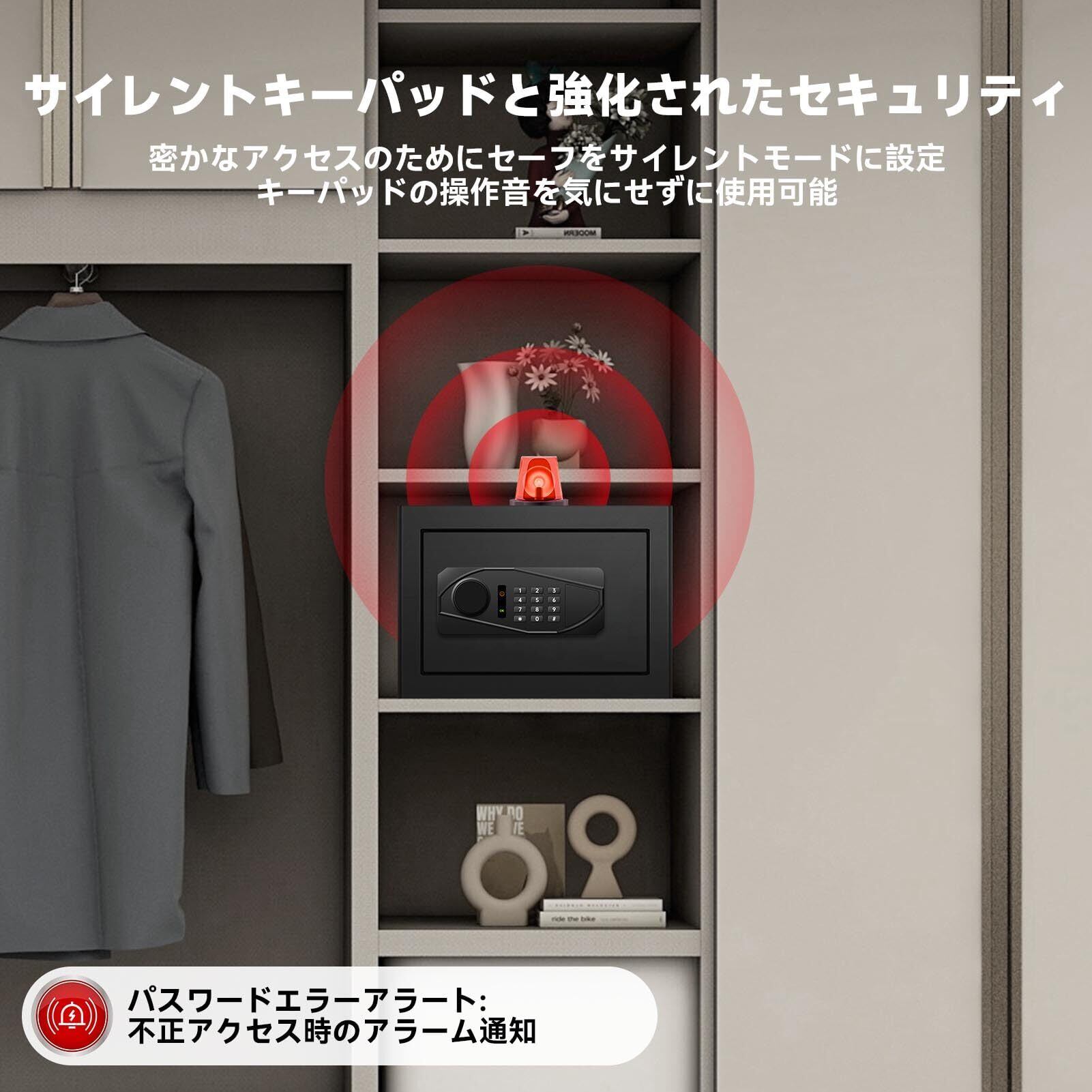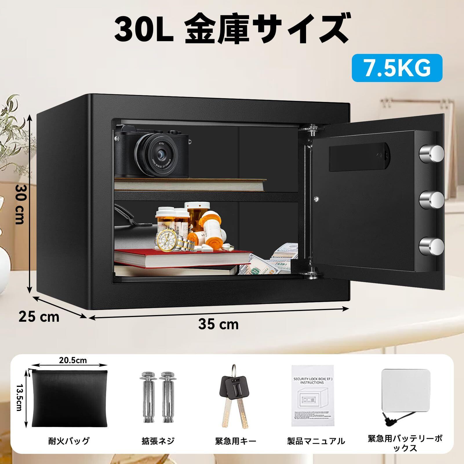 金庫小型 家庭用 30L テンキー式 電子金庫 耐火書類バッグ付属 店舗用 会社用 ホテル用 警報アラーム付き 壁に固定可能 仕切り板付き 30 x 35 x 25cm