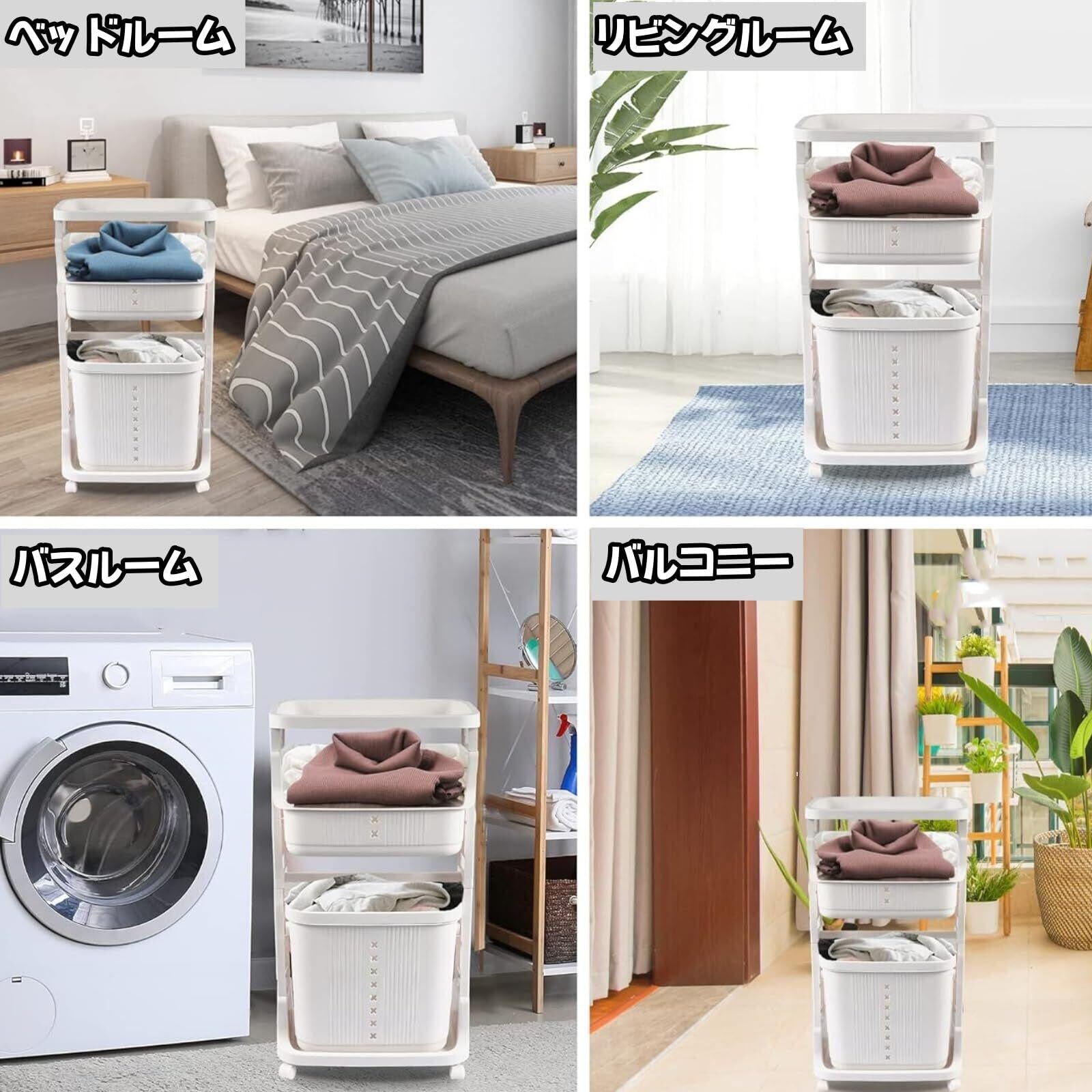 ランドリーワゴン 大容量 ランドリーバスケット キャスター付き 移動可能 収納ラック 脱衣所 ラック 4段 ランドリー収納 脱衣カゴ 組立式 洗濯 収納 洗面所 隙間収納 組み立て簡単