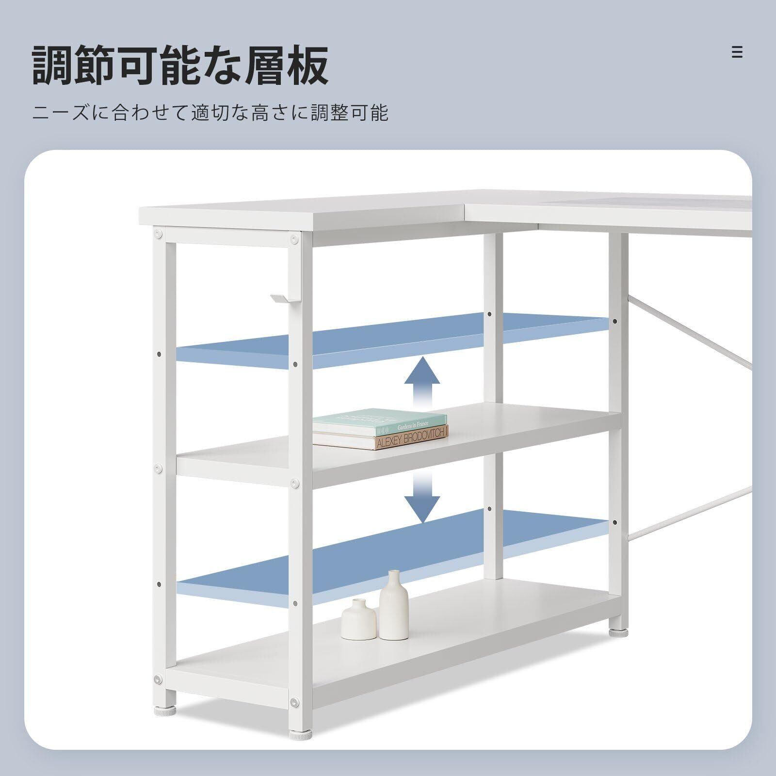 Maihail デスク 机 pcデスク パソコンデスク l字デスク 右棚左棚 幅120cm つくえ 棚板高さ調節可能 作業机 L字型 勉強机 リモートワーク ラック付き白い