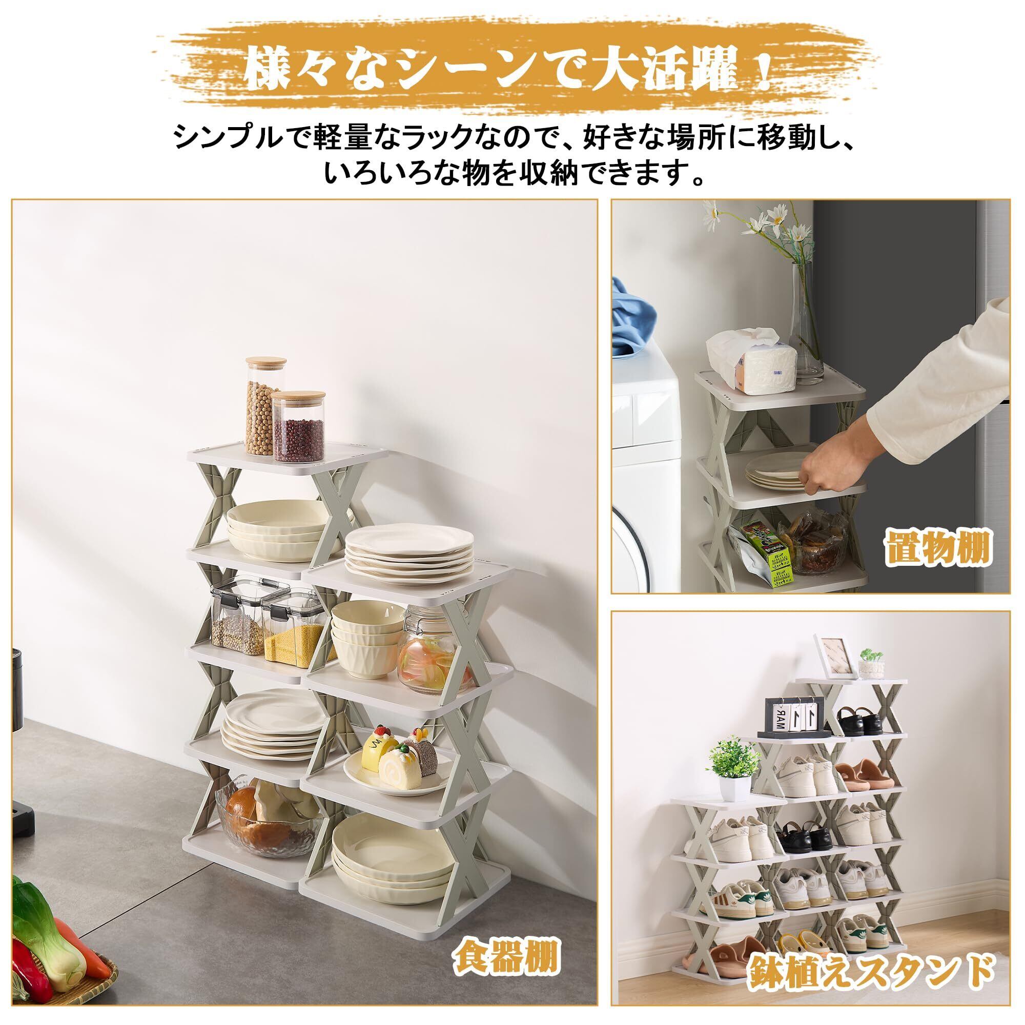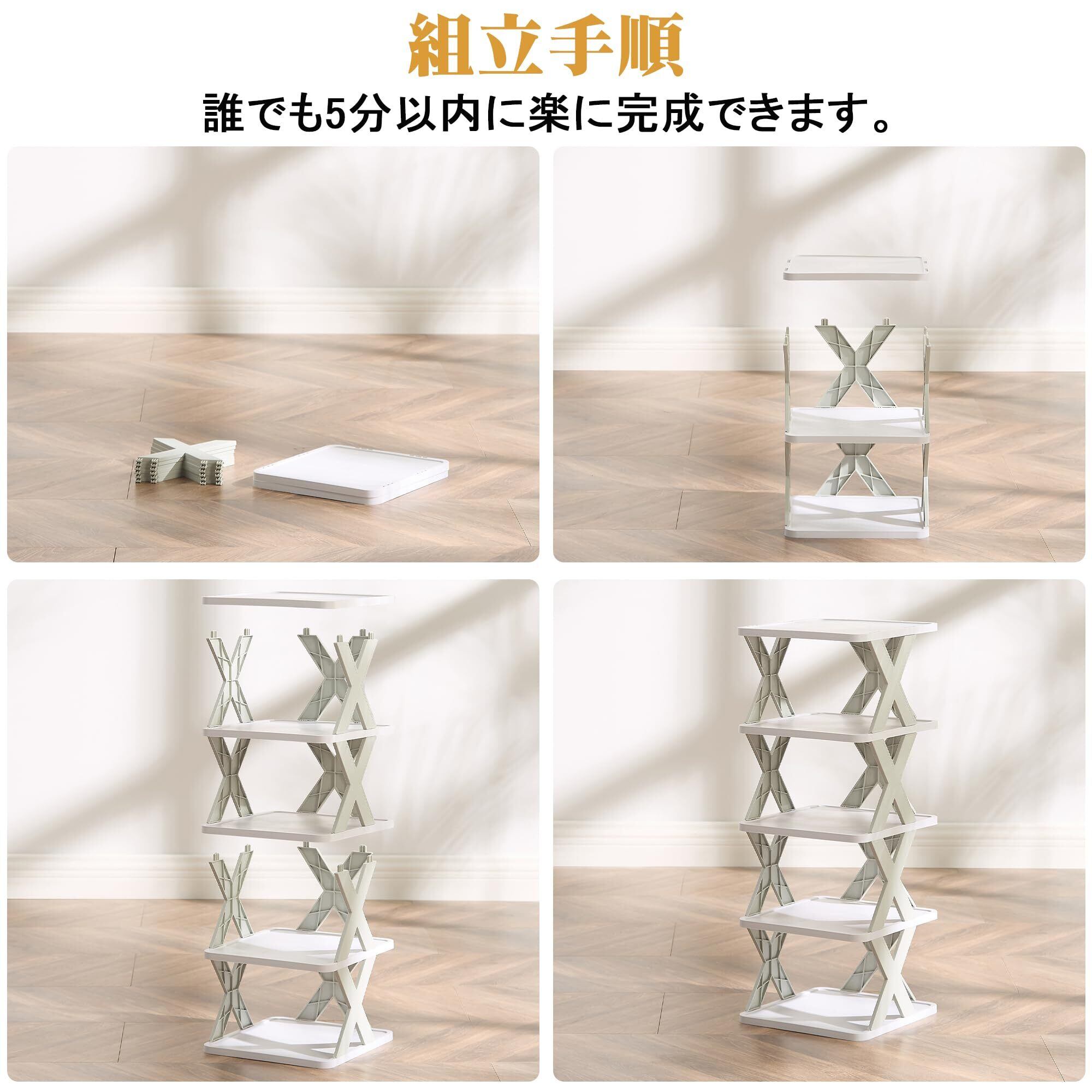 【組立簡単・持ち運び便利】このシューズラックは折り畳み式デザインなので、工具不要で一人でも1分以内に組立できます。このほか、このプラスチック製靴棚は軽量で、子供でも持ち運びやすく、掃除や引っ越しなどの時に便利です。
