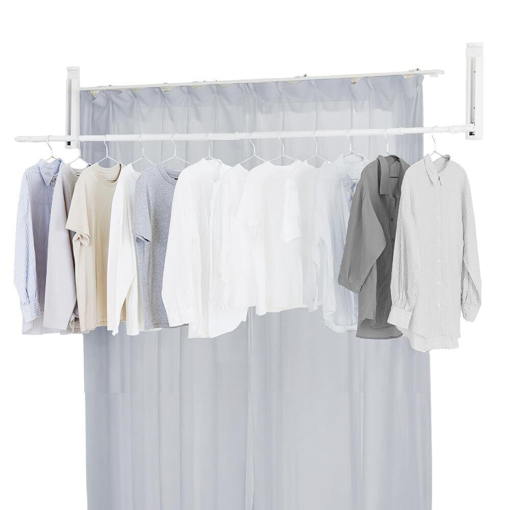 壁に設置して省スペースで使える室内物干しです。(※壁付けパーツ間の距離は、約149cm~233cm以内になるように設置してください。)