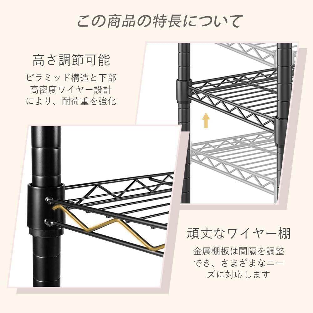 ハンガーラック 頑丈 大容量 洋服掛け 衣類収納ラック ワードローブ 10段棚板 高さ調節可能 洗濯物干し対応 ワードローブ 187×193×44cm ブラック