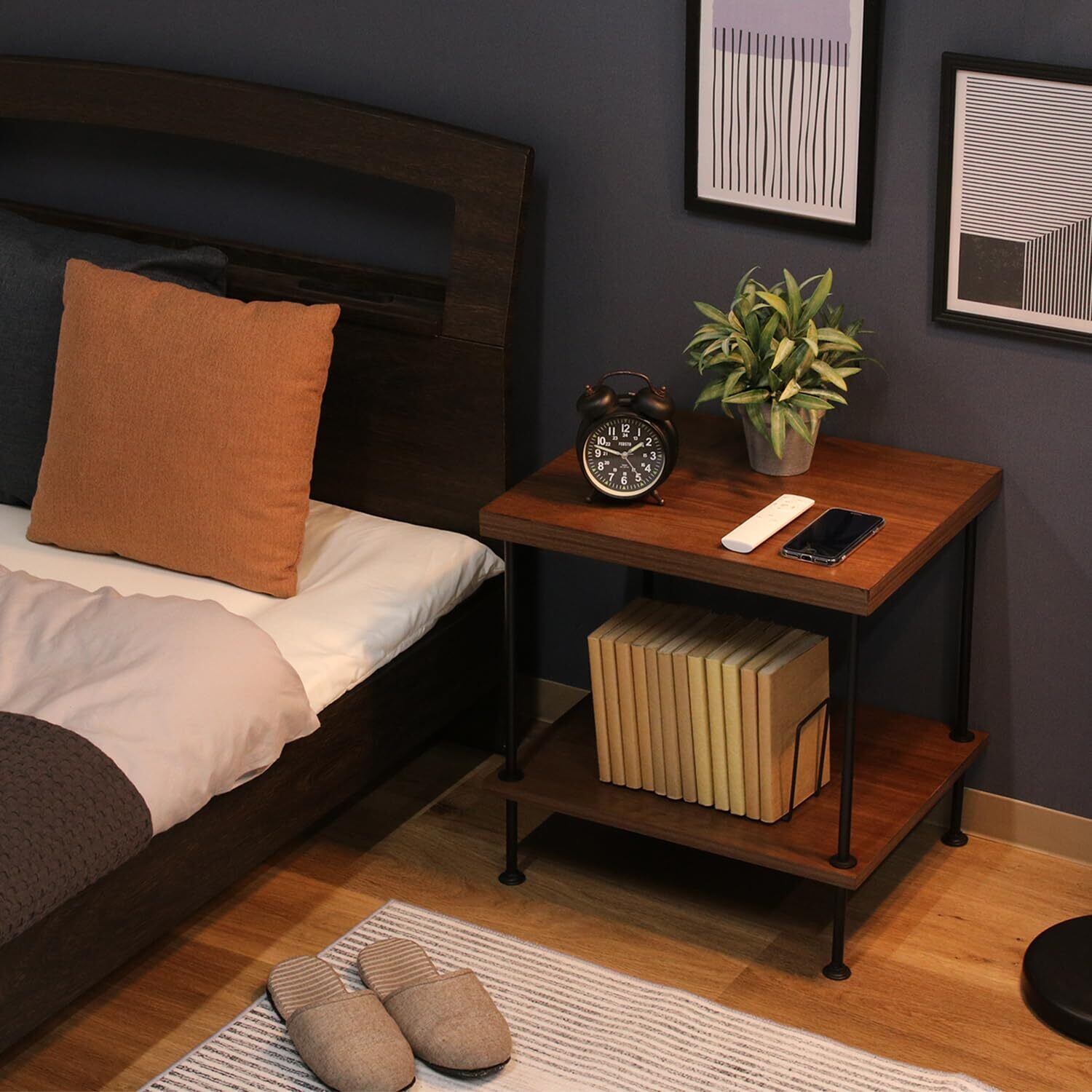 不二貿易 サイドテーブル 幅47×奥行40×高さ48×cm ミディアムブラウン ツイストロック EZBO 71884