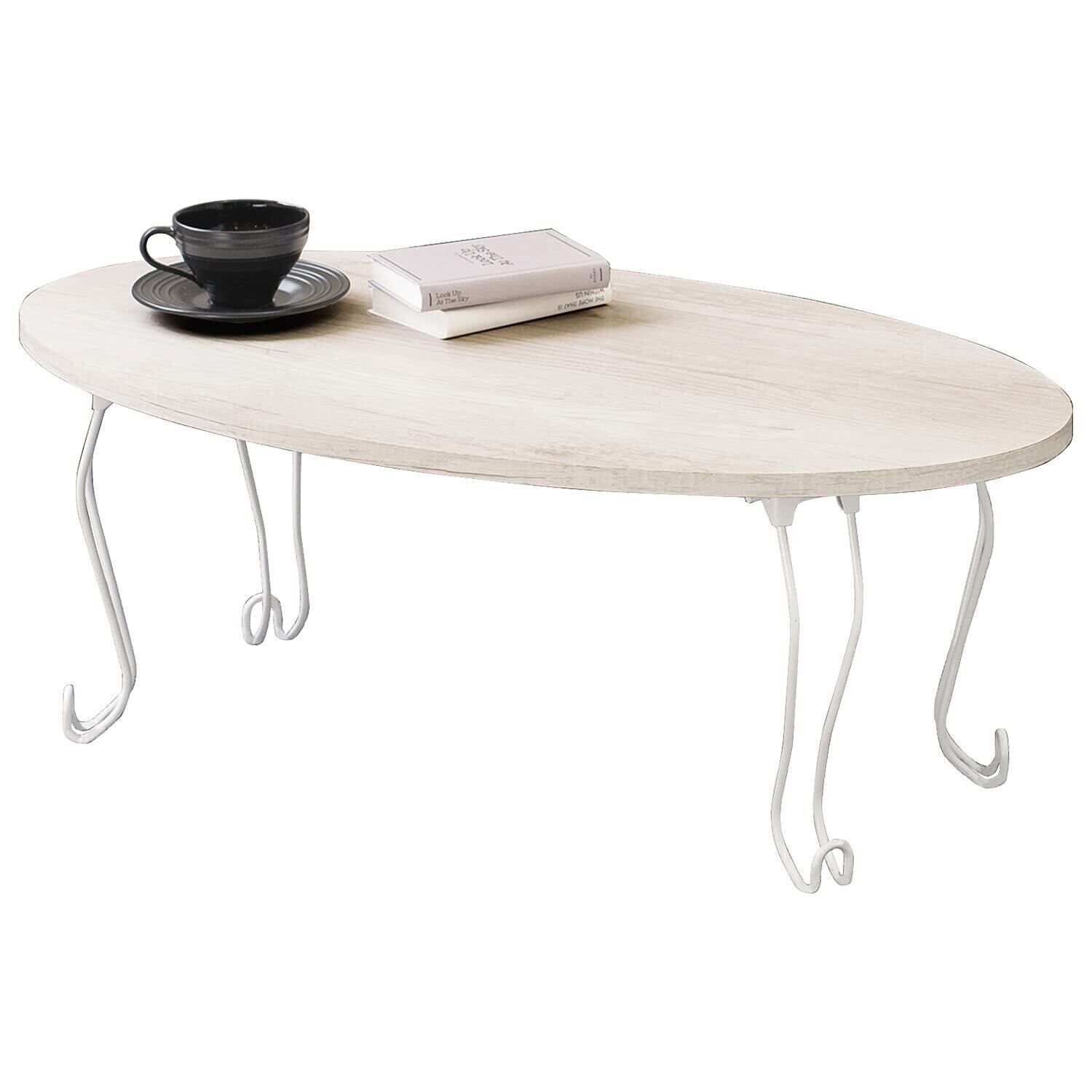 萩原 ローテーブル センターテーブル テーブル 机 折りたたみ 完成品 軽量 可愛い リビング ソファテーブル 幅90 楕円 ホワイト MT-6865WS