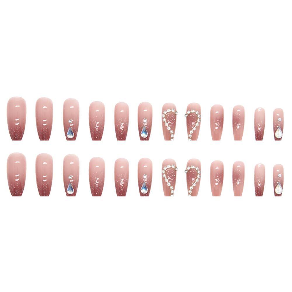 ネイルチップ ロング 付け爪 24枚入 キラキラ 光沢 立体 韓国 人気 おしゃれ ジェルネイル ネイルシール 可愛い 長め ネイルチップ 花嫁ネイル 手作りネイルチップ 両面テープ 蝶 3D付け爪 結婚式 成人式 パーティー 女性 プレゼント 繰り返し使える (タイプ7)