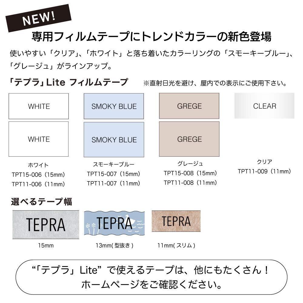 ■スマホで簡単操作、手のひらサイズのポケット「テプラ」■【アプリで作れるお手軽ラベルプリンター】スマホにつないでアプリで簡単にお洒落なラベルがさっと作れます。しかも、コンパクトで低コスト。機能も充実している優れものです。【「テプラ」シリーズで初のスマホ専用ラベルプリンター】スマホにBluetoothで接続し、アプリでラベルを編集。直感的に使えるので、ラベル作りがより身近になりました。【手のひらサイズ&電池駆動】持ち運びしやすく、収納しやすい手のひらサイズ。電池駆動なのでどこでもラベルを作成できます。【専用テープで低コスト】リーズナブルな感熱テープのため、様々な色や柄のラベルを気軽に楽しめます。【テンプレートで簡単ラベル作成】STEP1.カテゴリーを選択STEP2.使用したいデザインを選択STEP3.編集・印刷【オリジナル似顔絵】りんかく、目、鼻、口などのパーツを選択して自分だけの似顔絵を作成でき、自分のマークとして使えます。【タイムスタンプ機能】写真屋アルバム整理に便利なタイムスタンプ機能を使えば、現在日時を文字や時計アイコンに反映させたラベルが簡単に作成できます。【写真プリント】カメラロールの写真をラベルに挿入したり、手書きのメッセージなどをアプリのカメラで撮って、ラベルにしたりできます。【専用フィルムテープにトレンドカラーの新色登場】使いやすい「クリア」、「ホワイト」と落ち着いたカラーリングの「スモーキーブルー」、「グレージュ」がラインアップ。【専用テープは色や柄が豊富!】
