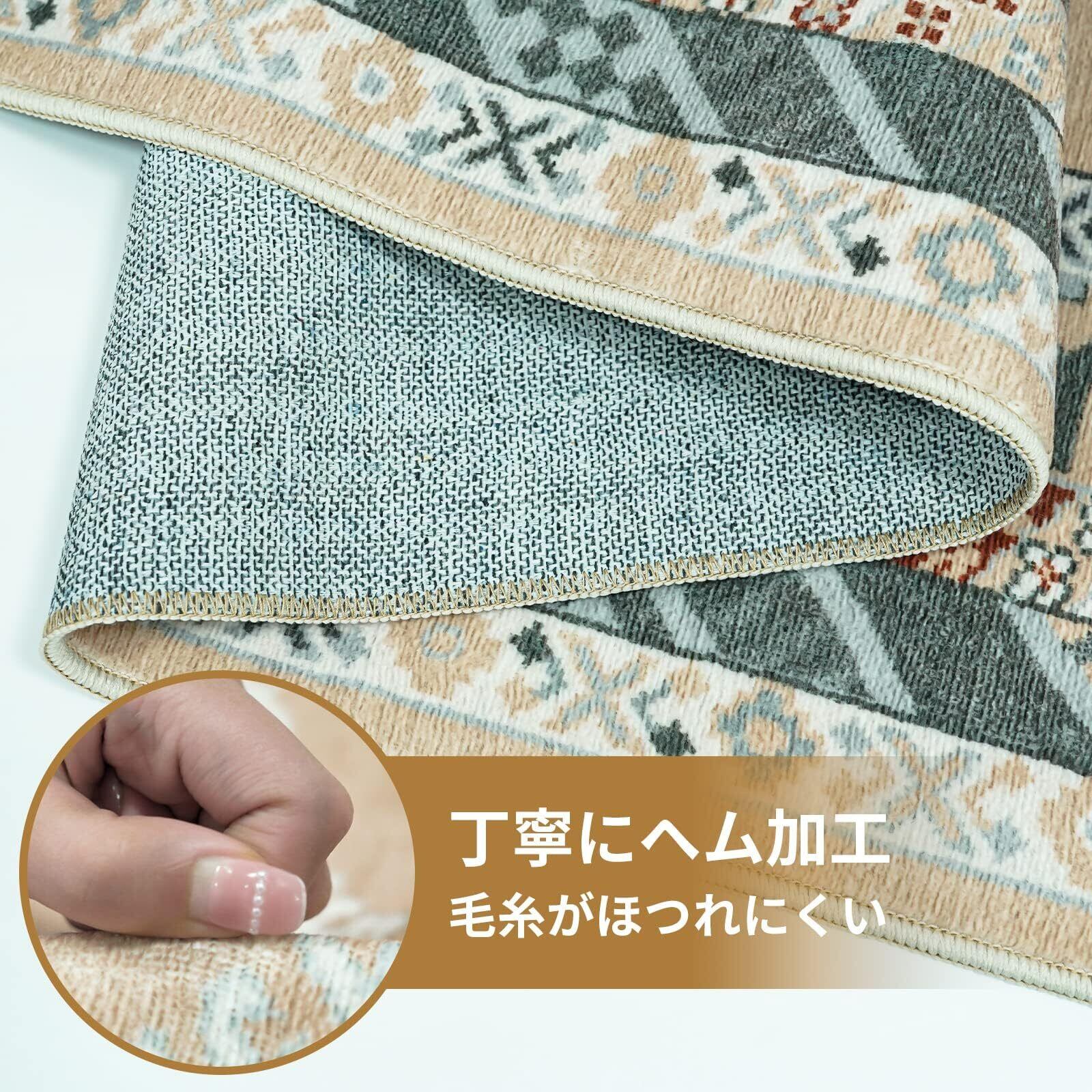 【丁寧にヘム加工・優れた耐久性】ラグのふちはヘム加工で強度をアップ。ラグマットの周囲をしっかりとしたポリエステル生地で縫製しているので、ほつれや破れなどが起こりにくくなっています。丈夫で毛が落ちず、色あせず、ご安心使用いただけます。