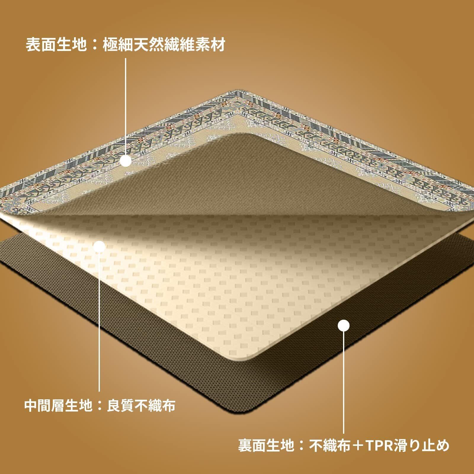 【滑り止め加工・防音効果両立】カーペット裏面は「不織布+TPR」の滑り止め構造を採用し、床面に密着する強力な吸着力でずれにくく、走り回る子供やペットの安全をしっかり守ります。優れた防音性能で、子供のおもちゃ音、床への衝撃音、日常の生活音などを効果的に低減し、下階への騒音を抑えるだけでなく、室内を静かで落ち着いた空間に演出します。さらに、床面を傷や汚れから保護する機能も備えており、ペットと暮らす家庭でも安心して使用できる、実用性の高いラグマットです。