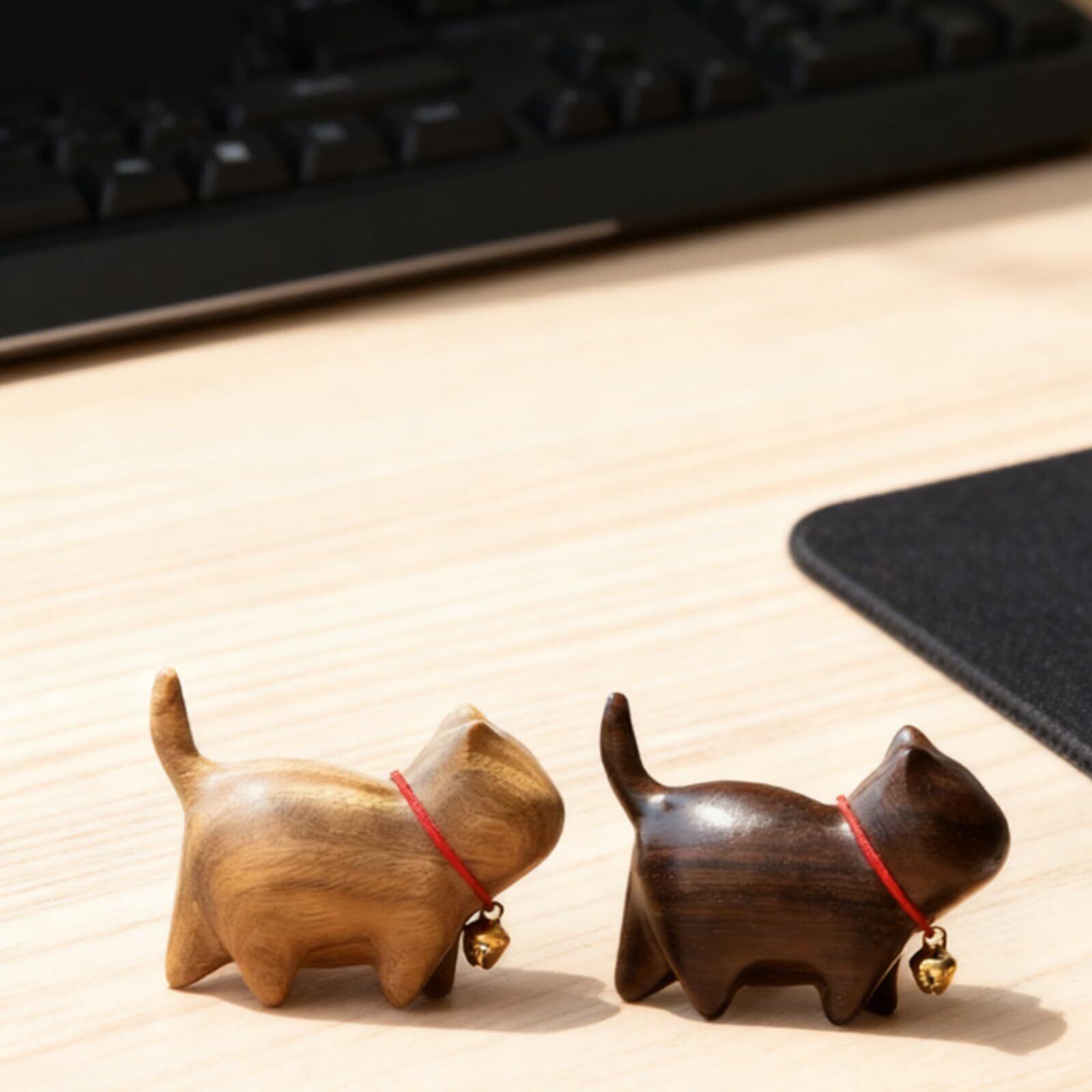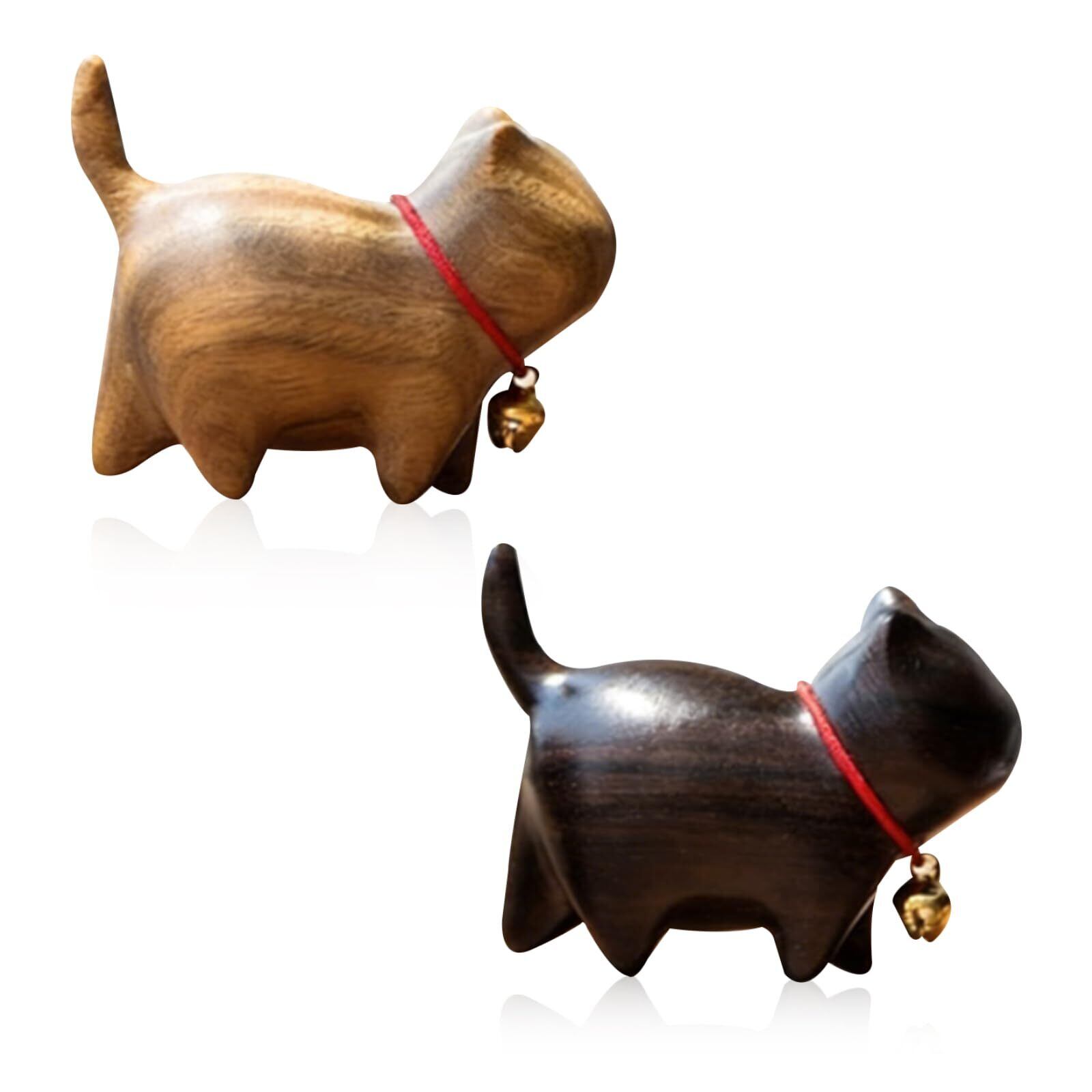 siawadeky 猫 置物 招き猫 ねこぐっず雑貨 2個セット 天然檀木 猫インテリア オブジェ 小さい 可愛い 猫グッズ オフィス 玄関 リビング 寝室 卓上用 癒し雑貨 幸運招き 猫 記念品 誕生日 母の日 家族 友人 ギフト