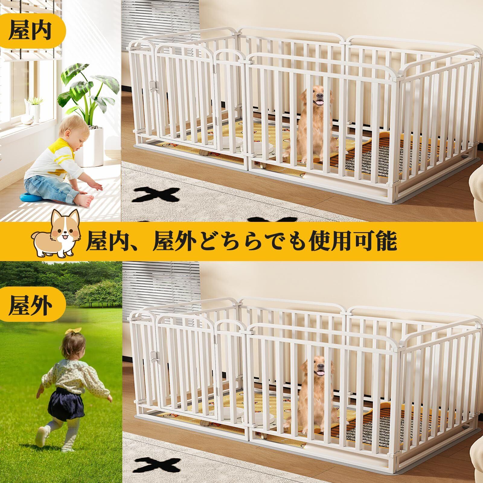 【広いスペース・レイアウト自由】犬が自由に動き回れる広い室内空間。犬はすぐにトイレのしつけができる、犬が犬小屋とトイレを区別できるようにする、愛犬の活動スペースを増やすために、必要に応じて形や面積を自由に組み合わせることができます。