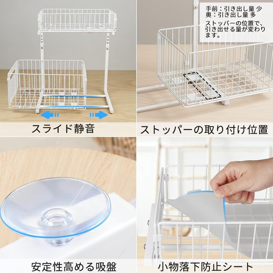 シンク下 収納 引き出し 2段 キッチン下収納 シンク下収納ラック スライド式 キッチンした/シンクした/洗面台下/流し台下/コンロ下 スライドラック 高さ調節可能 組立簡単 大容量 省スペース(L字型、ホワイト)