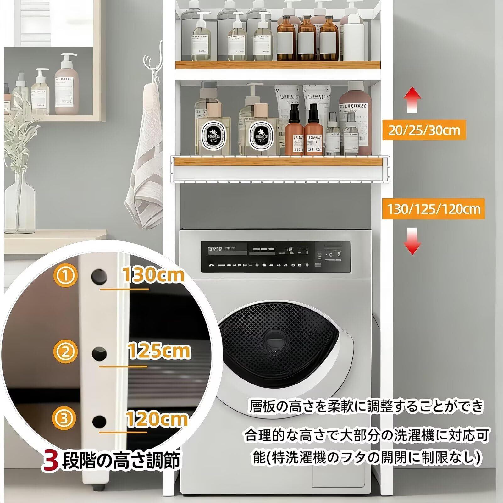 【スペースを節約】洗濯機の上に使用される収納ラックには棚の設計は科学的で合理的で、高さは適度で、洗濯機の蓋は制限されません。フリップトップ洗濯機の上の未使用スペースを効果的に利用し、毎日の洗面用具収納のニーズに応えます。