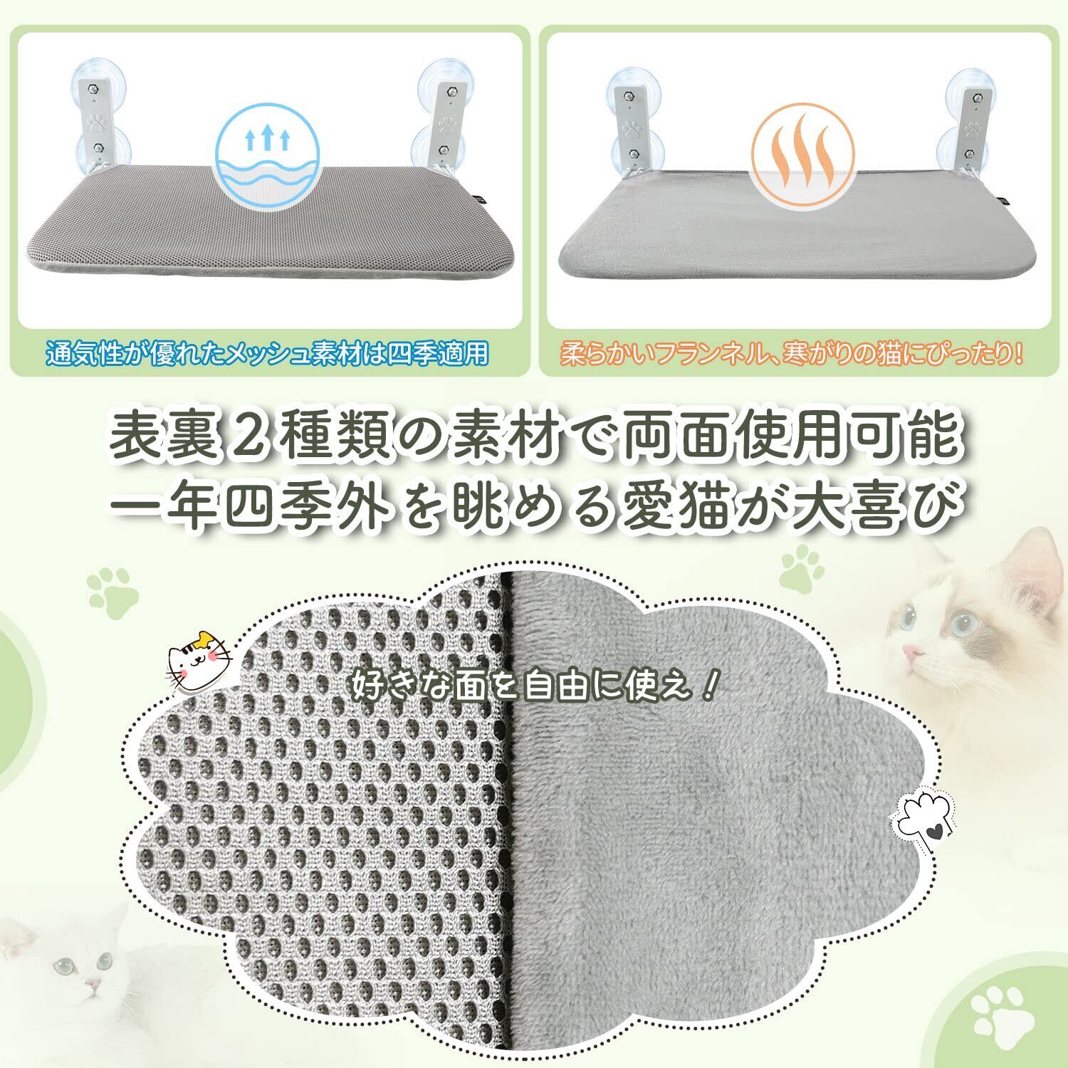 GUUSII HOME 猫窓ベッド ねこベッド 猫ハンモック 折畳み式猫ハンモック 吸盤 猫窓用ハンモック 猫窓ベッド 窓ハンモック 猫窓ベッド 吸盤式 ペットベッド ねこ ネコ キャットハンモック キャットマット 窓際マット 通気メッシュ 日光浴 ウィンドウベッド 洗える 猫用 耐荷重約25KG ストレス解消 組立簡単 日本語説明書付き 90日 (グレー, S)