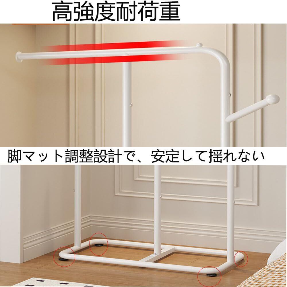 【高強度、高耐荷重】パイプハンガーラックは高品質の金属管を使用した高強度なパイプで、防錆性や耐摩耗性にも優れています。耐荷重は20kgで、太めのパイプでしっかりと安定しています。
