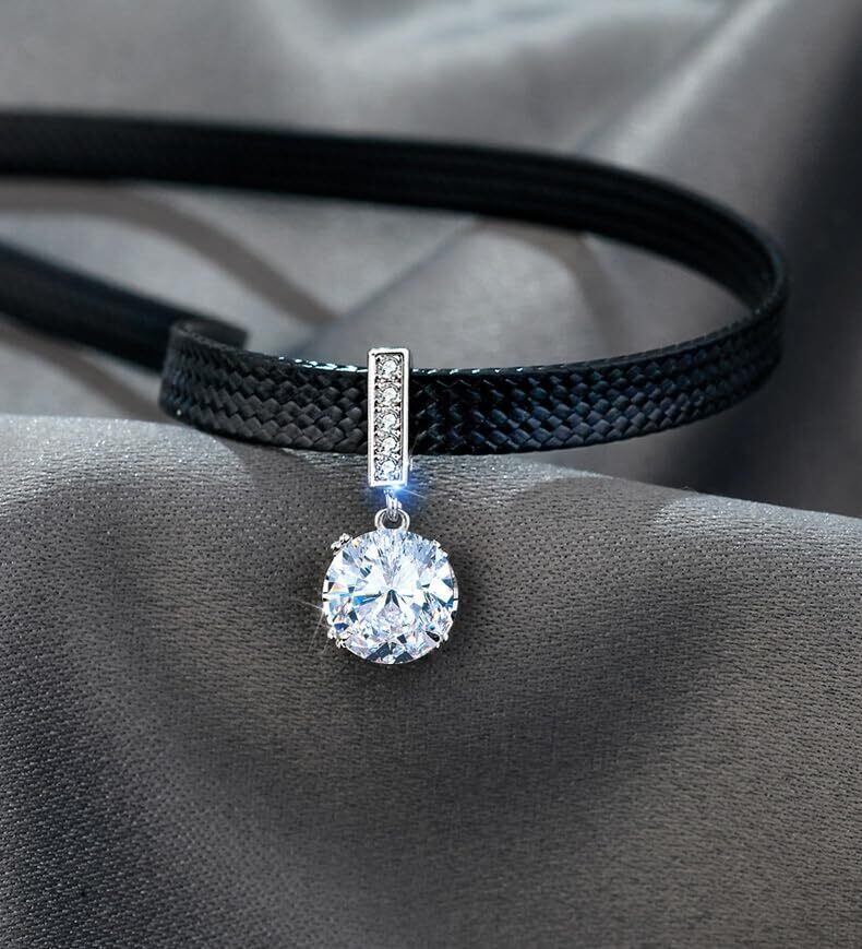 【ジルコニアペンダントチョーカー】 シンプルながらも上品な輝きを放つキュービックジルコニアのペンダントが特徴的なデザイン。洗練された印象を演出し、日常使いから特別なシーンまで幅広く活躍します。