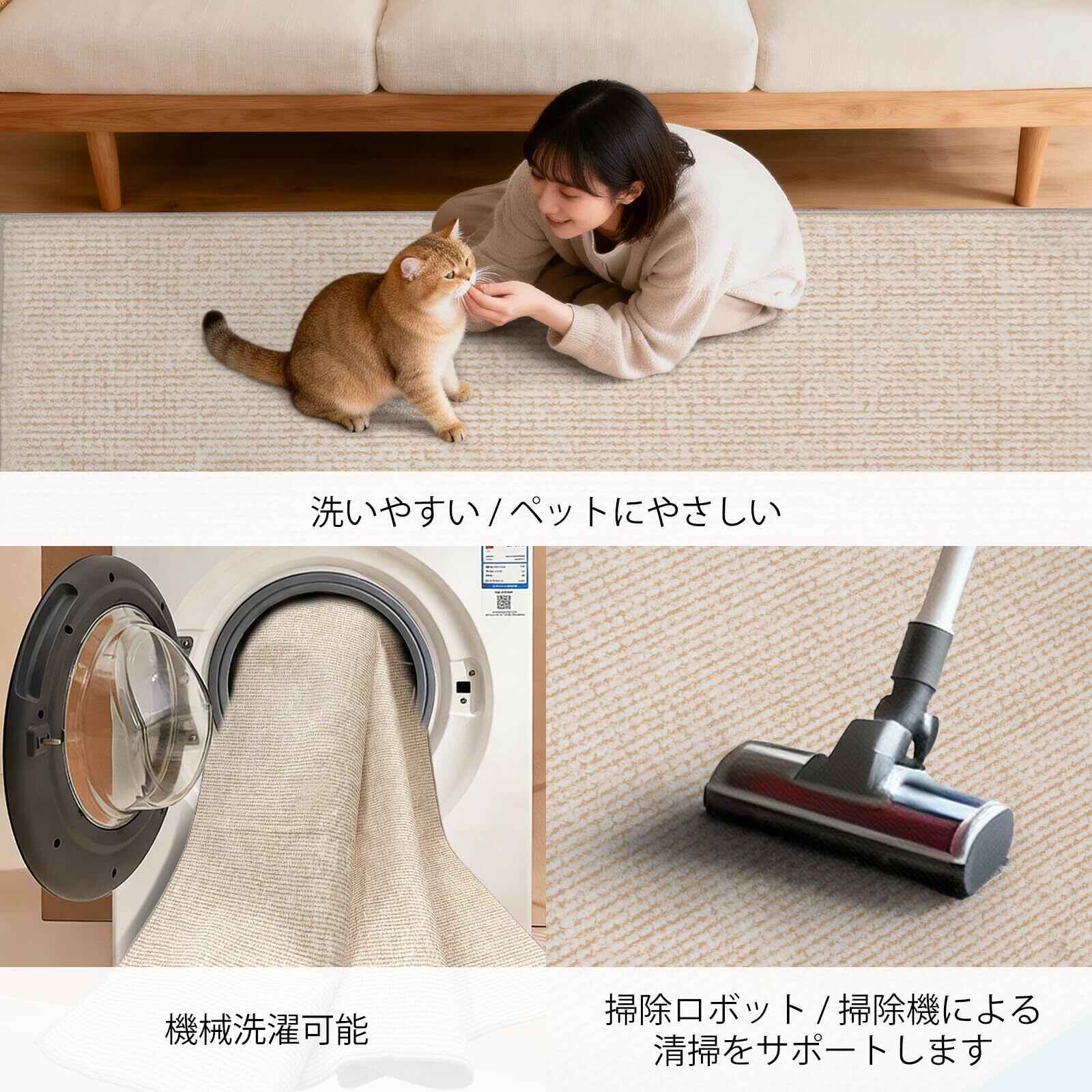 ラグマット カーペット 200x300cm 約4畳 長期主義品 洗える じゅうたん おしゃれモダン絨毯 江戸間 耐磨耗性 滑り止め付 ホットカーペット対応 防音 折り畳み オールシーズン適用 リビングルーム地毯 北欧寝室 無地 米キャメル色 ベージュ