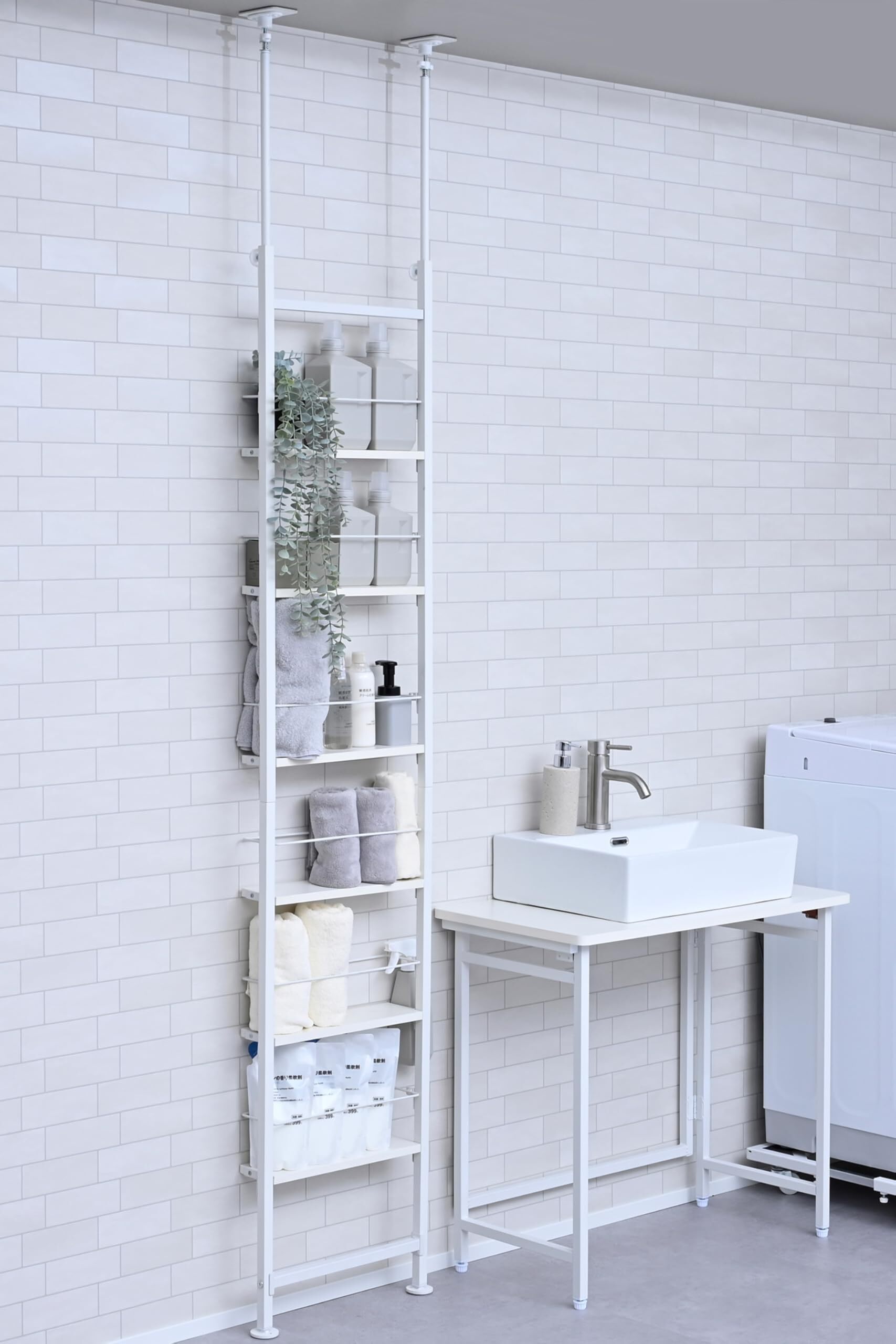 【様々なシーンで活躍】キッチンでスパイスラックやランドリーでタオルや洗剤のストックの収納など、狭い場所の壁面収納として便利です。リビングで趣味の小物を飾るディスプレイラックや玄関や廊下でスリッパラックにも。