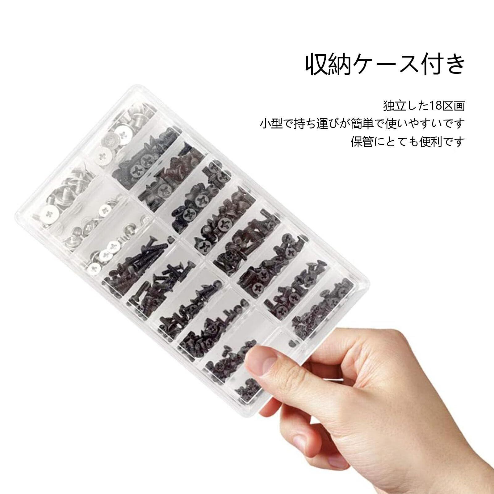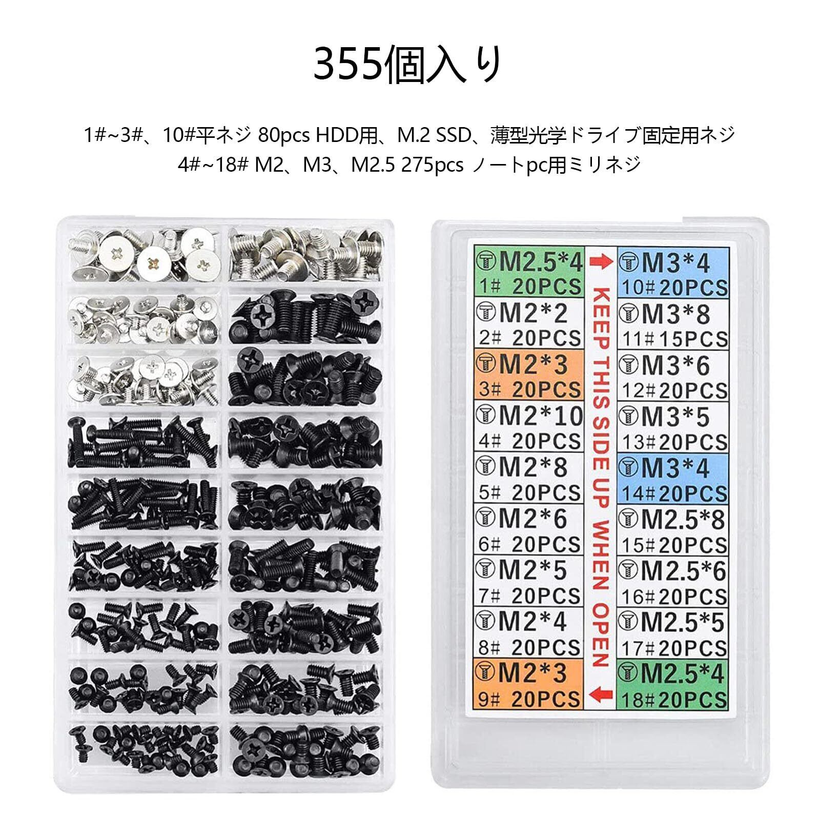 【内容】ノートPC用ネジ M2 M2.5 M3 + HDD M2 SSD固定用平ネジセット 収納ケース付き 交換用ノートパソコンねじ 355本入り。