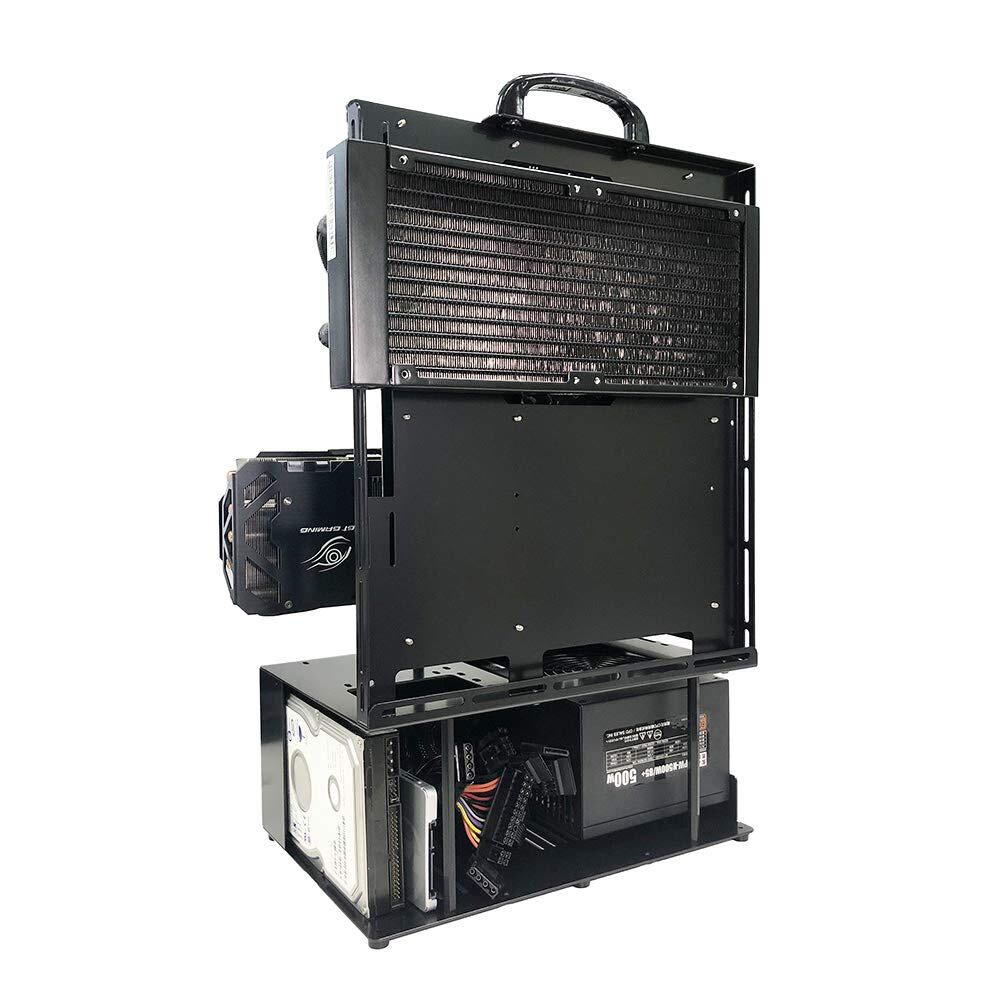 持ち運びも可能な取っ手付き。パーツ検証用としてもおすすめです。水冷クーラー用の取付穴を搭載(ラジエーター対応サイズ 120mm / 140mm / 240mm / 360mm)。