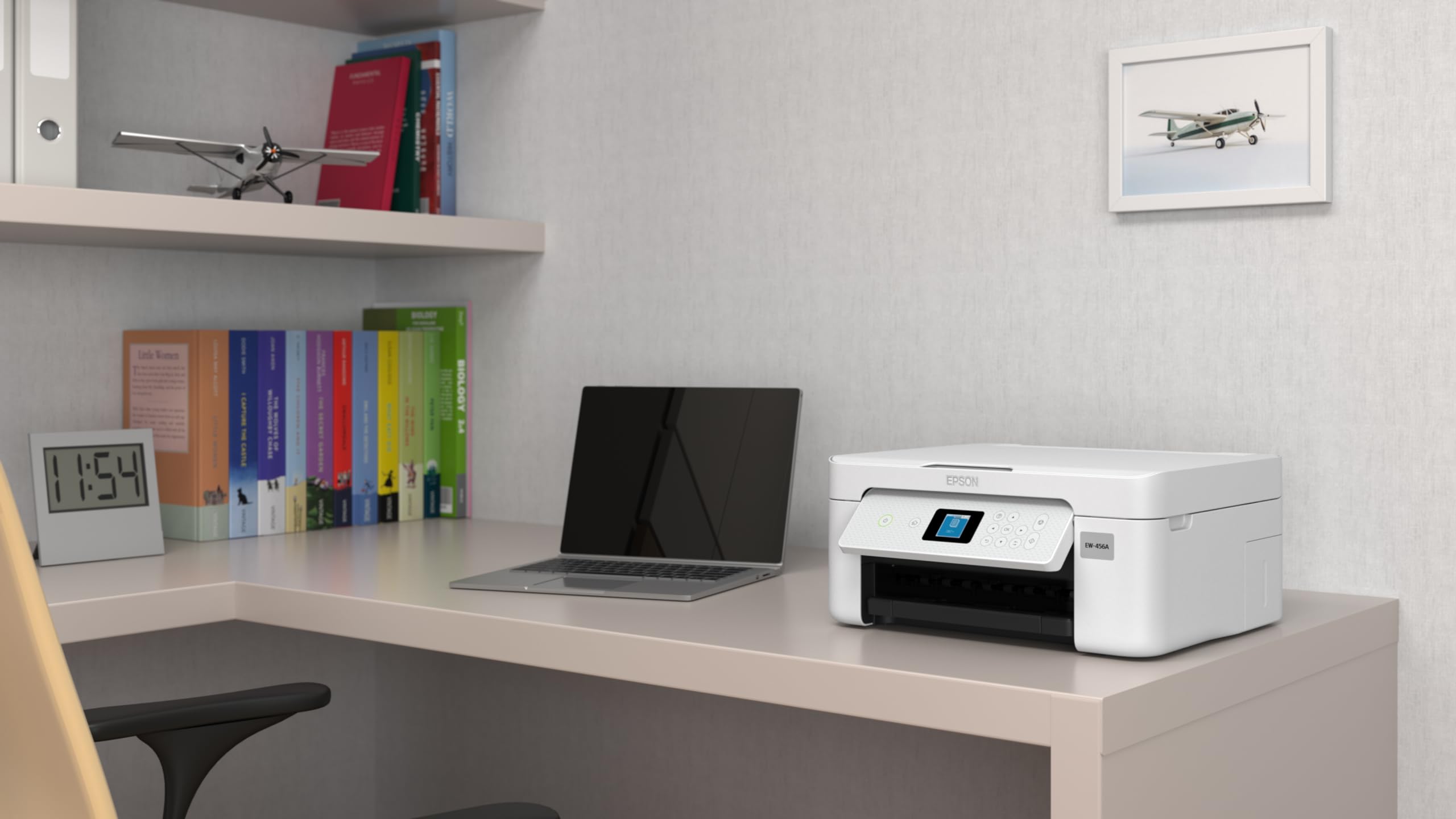 プリンター、コピー、スキャナーの機能を備えたコンパクトでスタイリッシュなデザイン。置き場所を選びません。くっきりブラックで文書がキレイ。