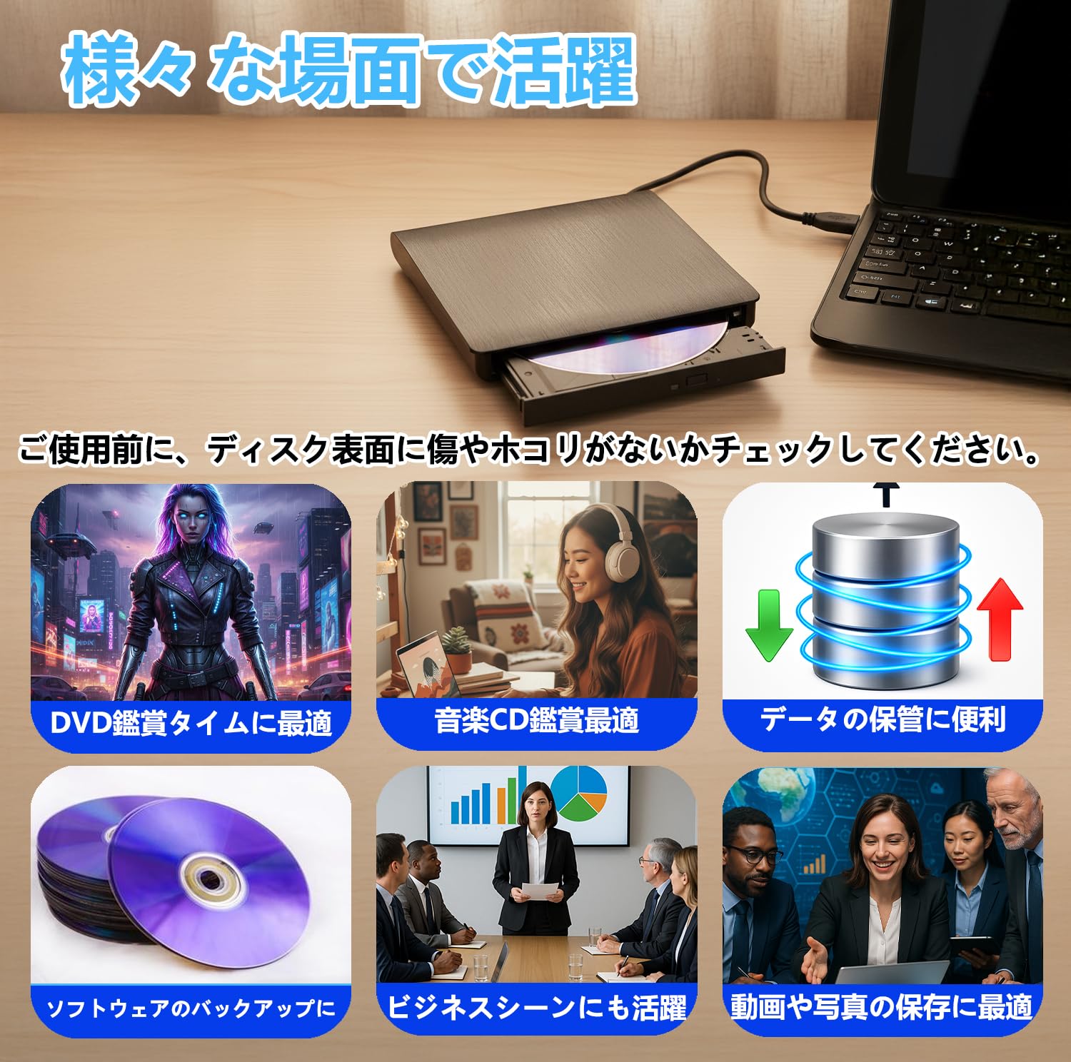【最新なインテリジェント技術を採用】本外付けdvdドライブはユーニックな知能的インテリジェント記録技術を採用します。CD / DVD-rom、CD-R / RW、DVD