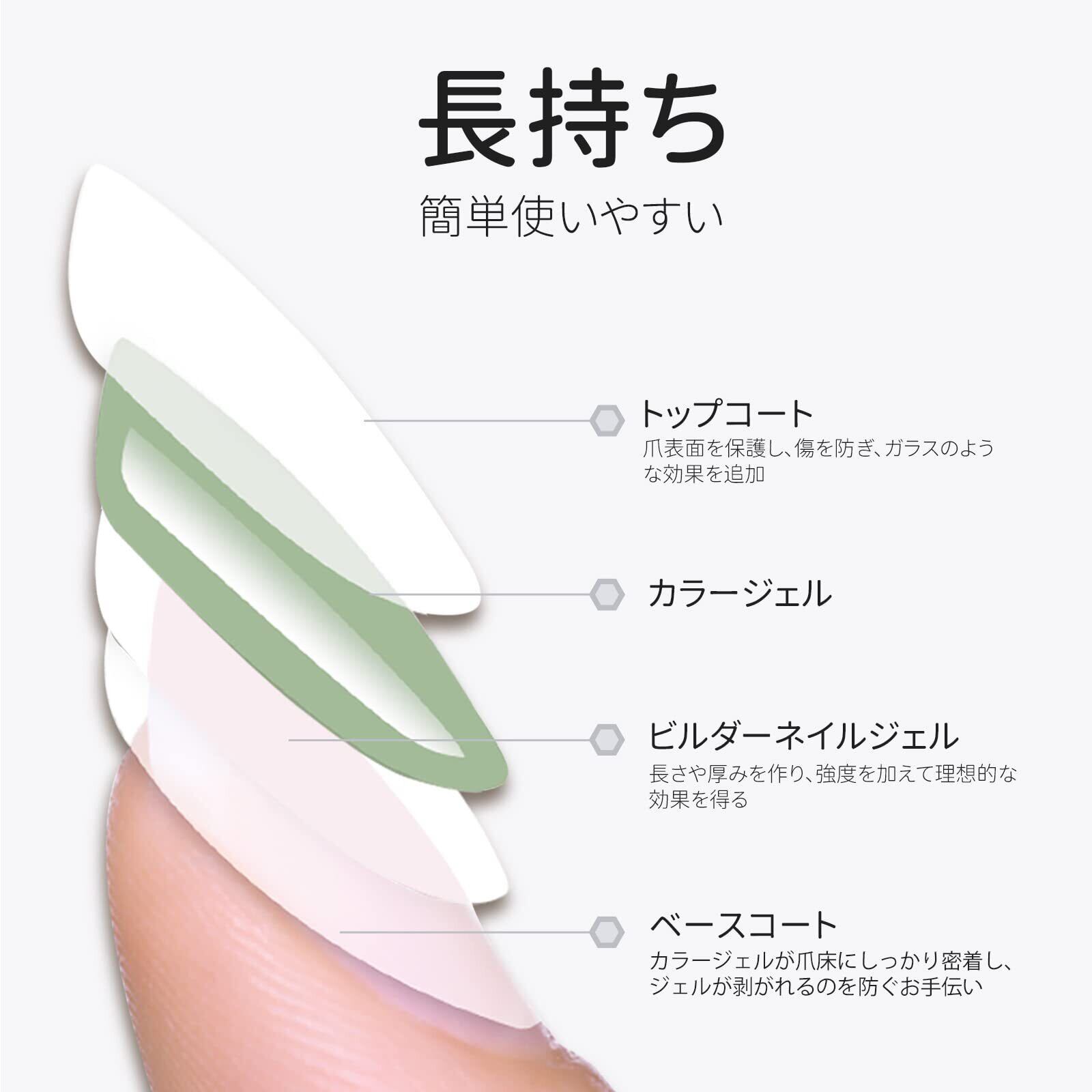内容物:15 ml×3ボトル トップジェル、ベースジェル、ビルダーネイルジェル 3点セット