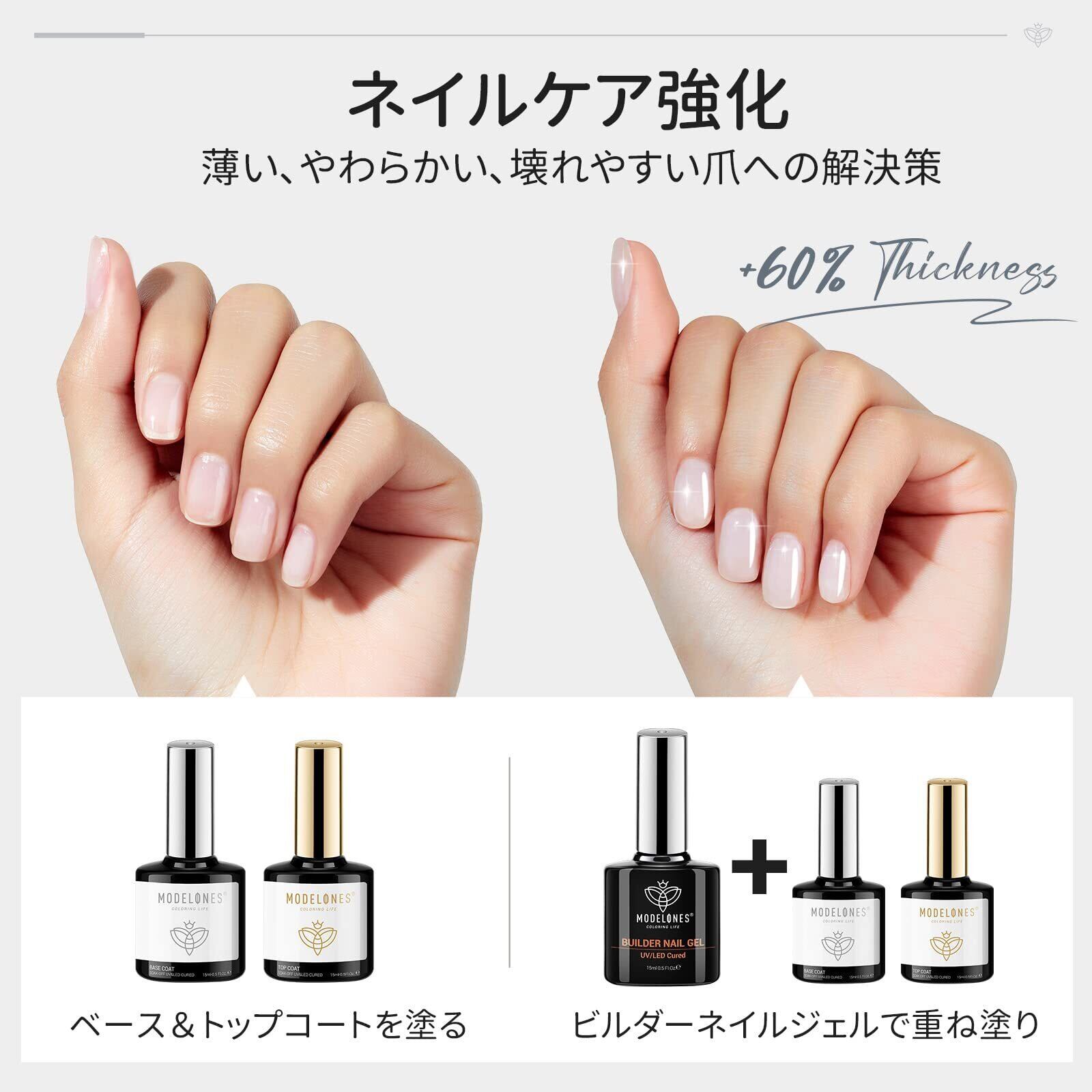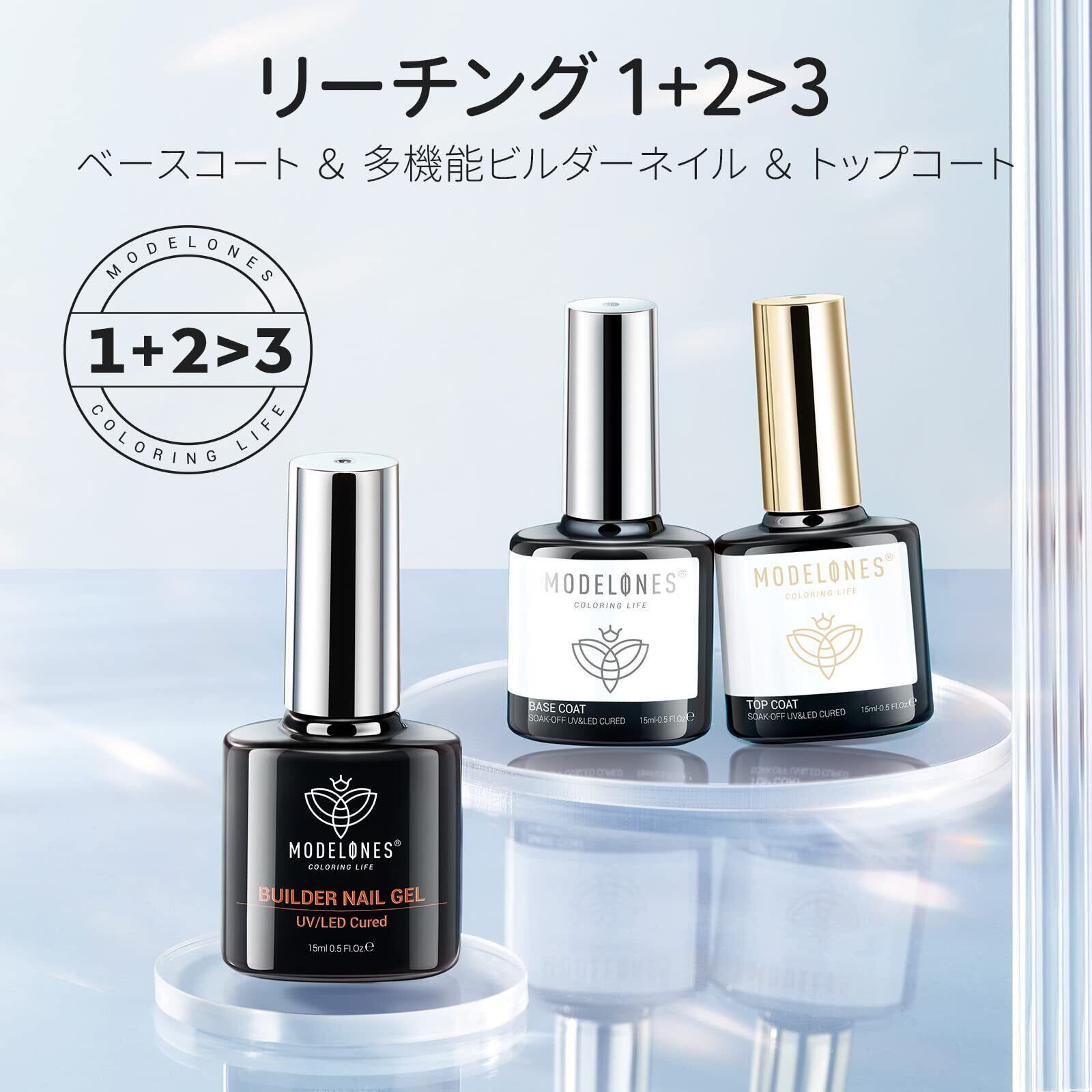 Modelones ジェルネイル トップ コート ベース コート ビルダー ネイル ジェル 3*15mlセット、ノンワイプトップコート、 トップ コート シャイン フィニッシュ、7-in-1 クリア ジェル ビルダー 爪の強化 アペックス ジェルネイル用 UV/LED対応 ネイルジェル カラージェルネイル、女性へのギフト
