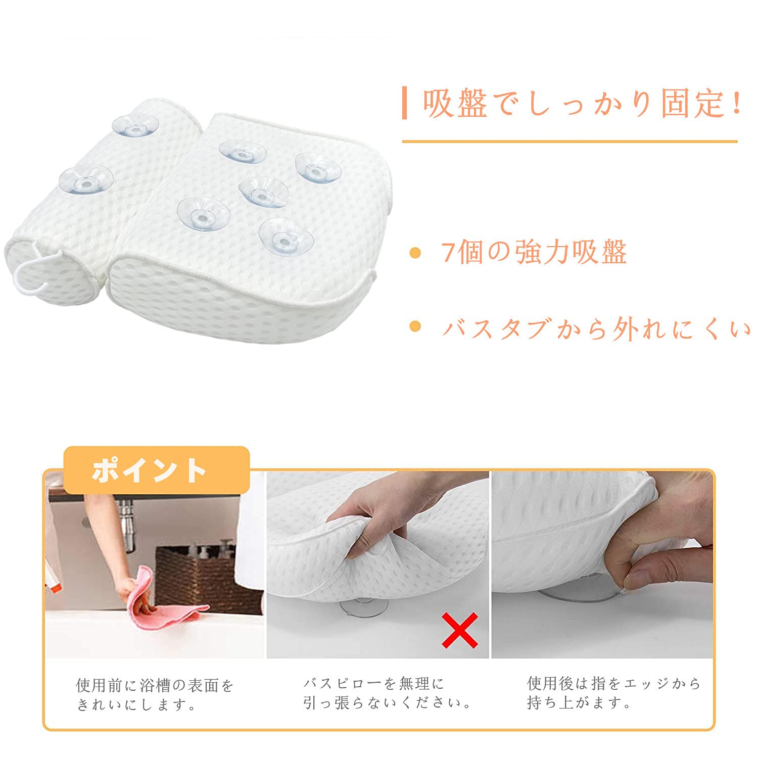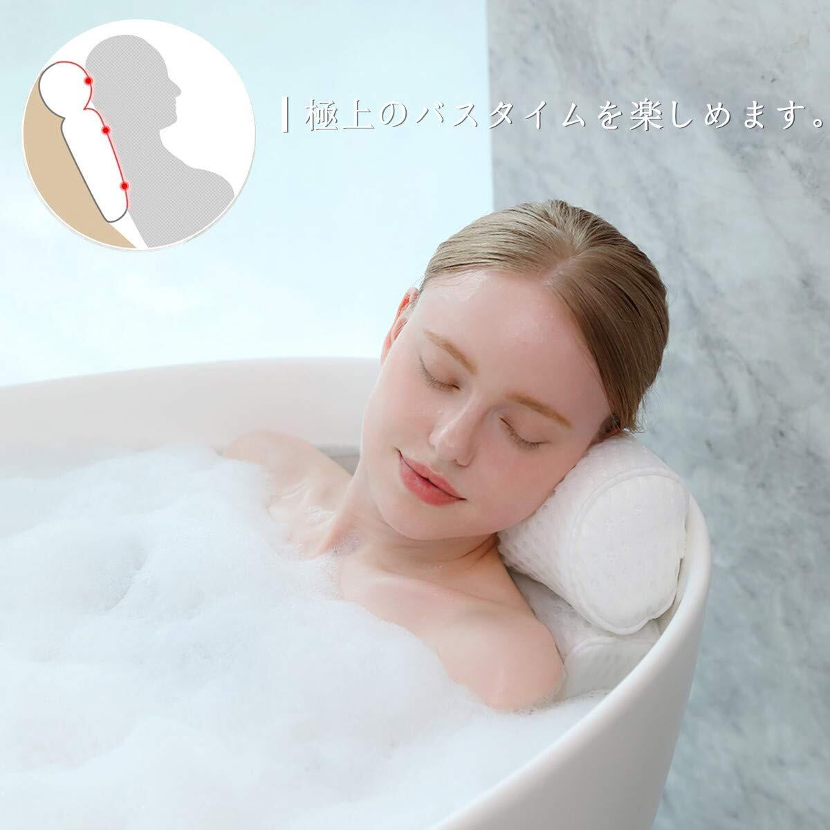 バスピロー お風呂枕 まくら 4D通気メッシュ 柔らかい 吸盤付き 滑り止め 洗濯ネット付き 母の日のプレゼント人気 半身浴 バスタブ バス用品 リラックスグッズ プレゼント