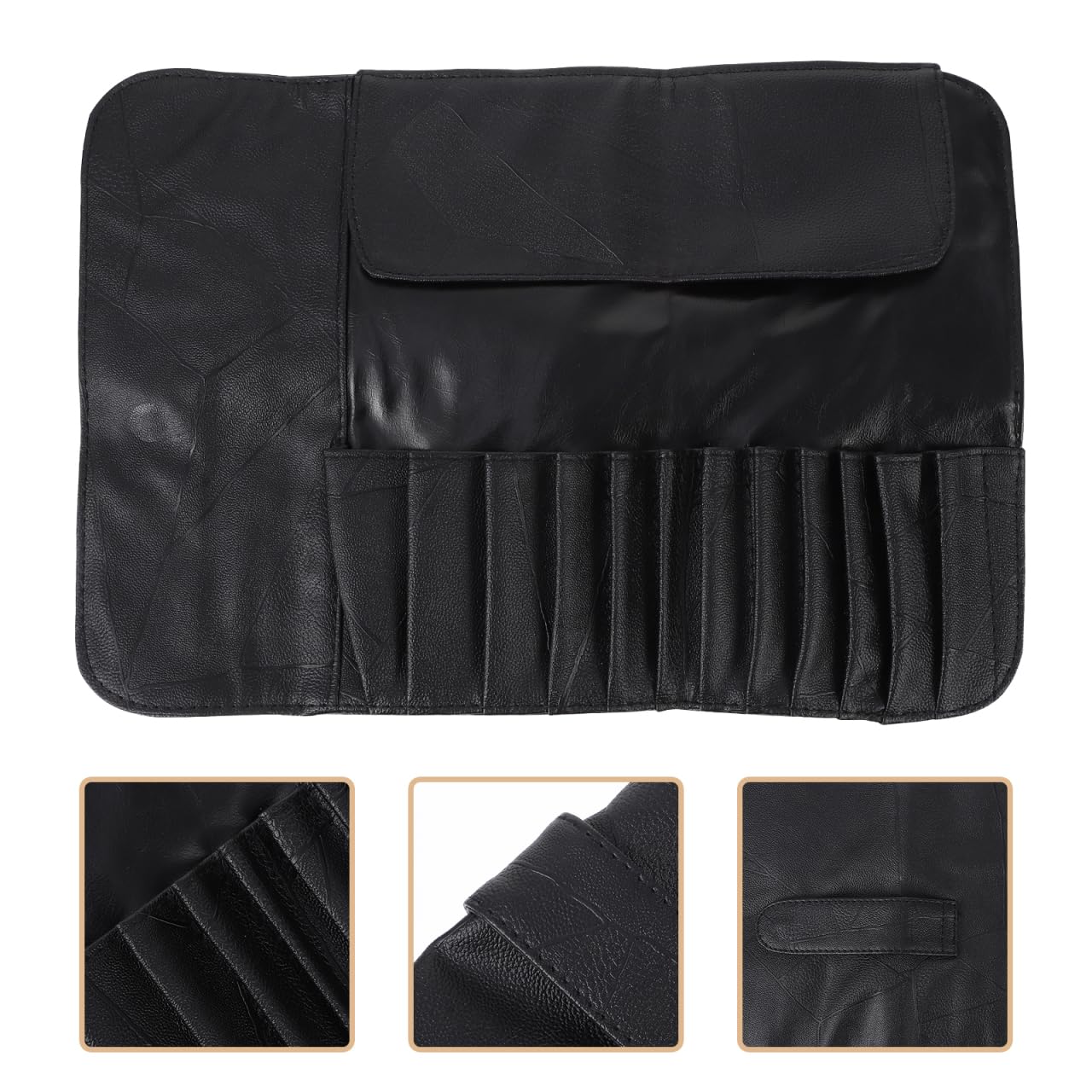 【折り畳みデザイン】: 必要な本数をきれいに収納できる折り畳みタイプで、メイクブラシをしっかりと保護します。