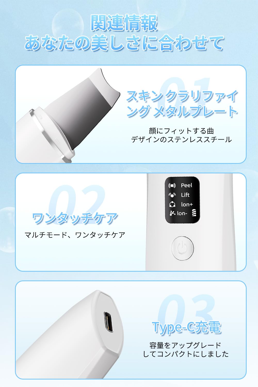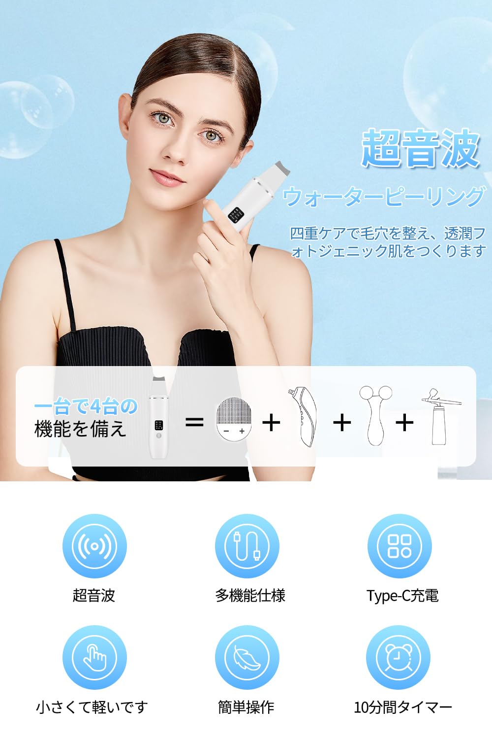 VORAGA ウォーターピーリング コードレス LED液晶ディスプレイ 軽量 超音波ピーリング 小型 コンパクト 10min自動電源オフ USB充電モデル 超音波振動 ワンボタン簡単操作 男女兼用 持ち運び便利 旅行 海外対応 美顔器 日本語取扱説明書 男女兼用 出産祝い 母の日 プレゼント