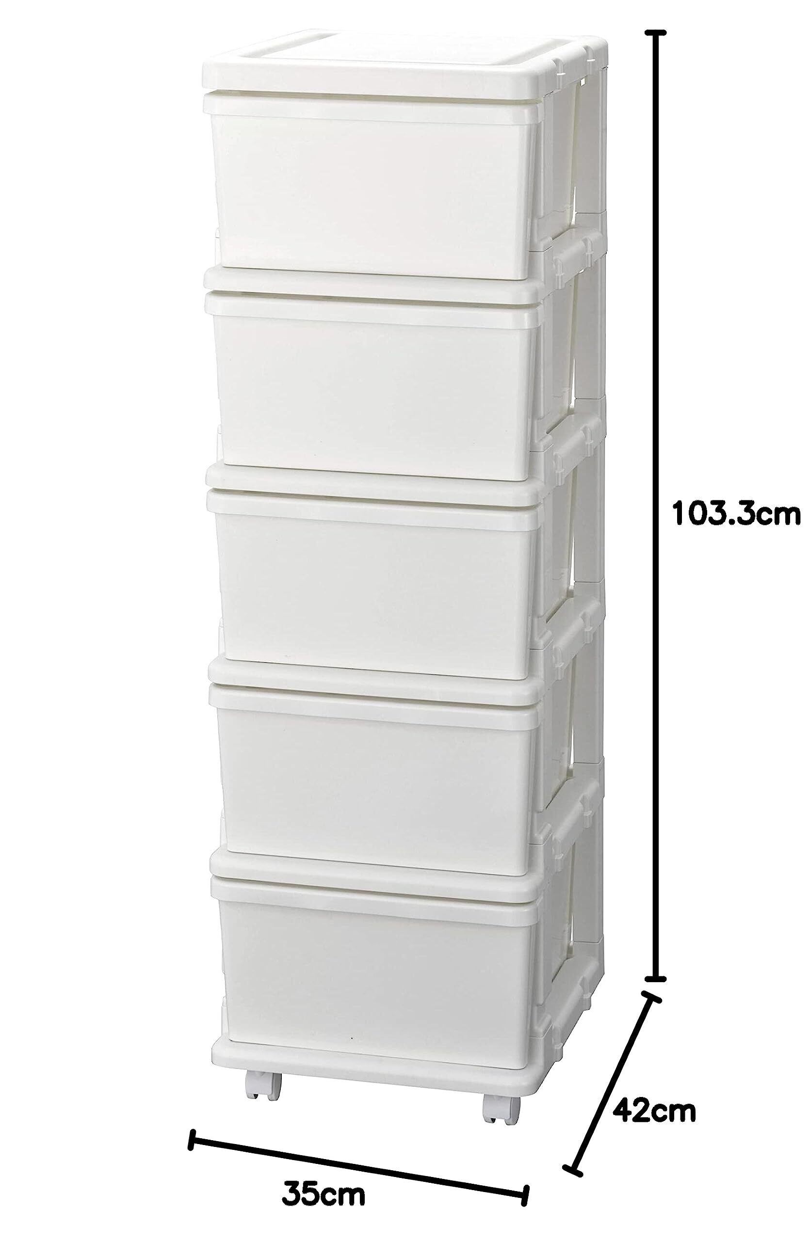 JEJアステージ(JEJ Astage) SEEDS(シーズ) スリムチェスト 5段 キャスター付き プラスチック ホワイト SIU-5-WH