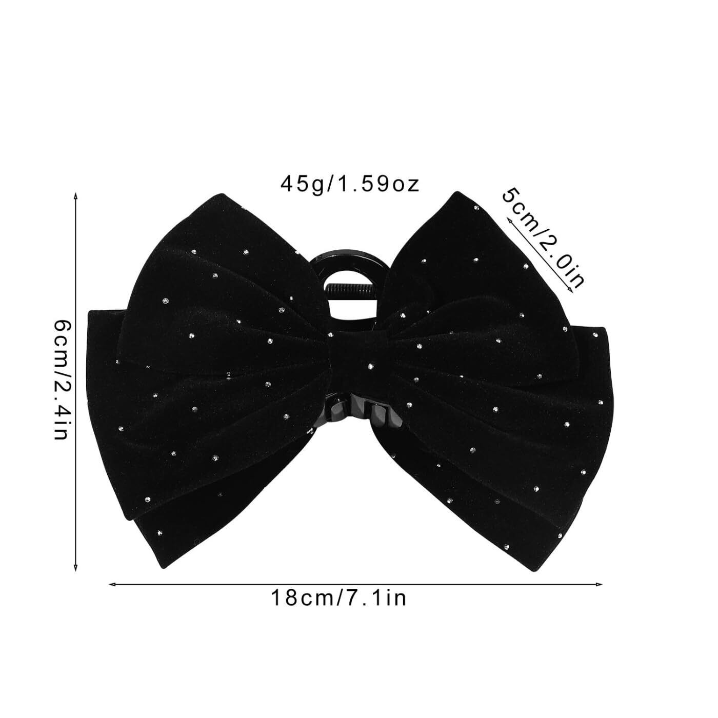 【材質】主要素材に高品質ベルベット生地を使用し、肌に優しく触感も柔らかい。クリップ部分は耐久性に優れたプラスチック製を採用し、丈夫で破断しにくい構造で長期間使用可能。さらに表面に小さなラインストーンを散りばめ、光に当たるとキラキラ輝き、製品の優雅さと美しさを一層引き立てています。