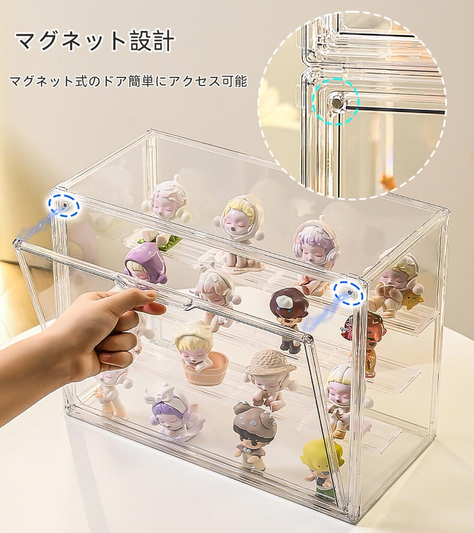 【積み重ね可能】上部に積み重ね用の凹部設計で 、安定して重ねられます、 四隅フレームは非常に堅牢で高い耐荷重性を持ちます。変形や破損の心配なしで、コレクションを長期的に安心収納できます。