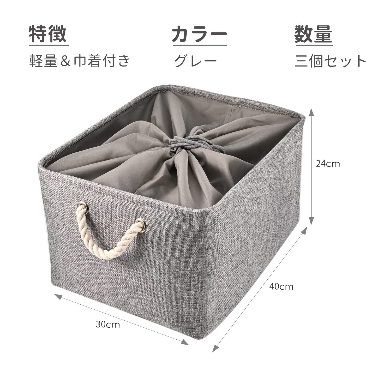 STVICTORY 収納バスケット 収納かご 3個セット 40×30×24cm 取っ手付き オシャレな収納ボックス 布 洗濯かご インテリア雑貨 衣類 小物収納 引き出し 折り畳み式 綿麻製 防水防湿 高耐久性 長方形 (グレー)