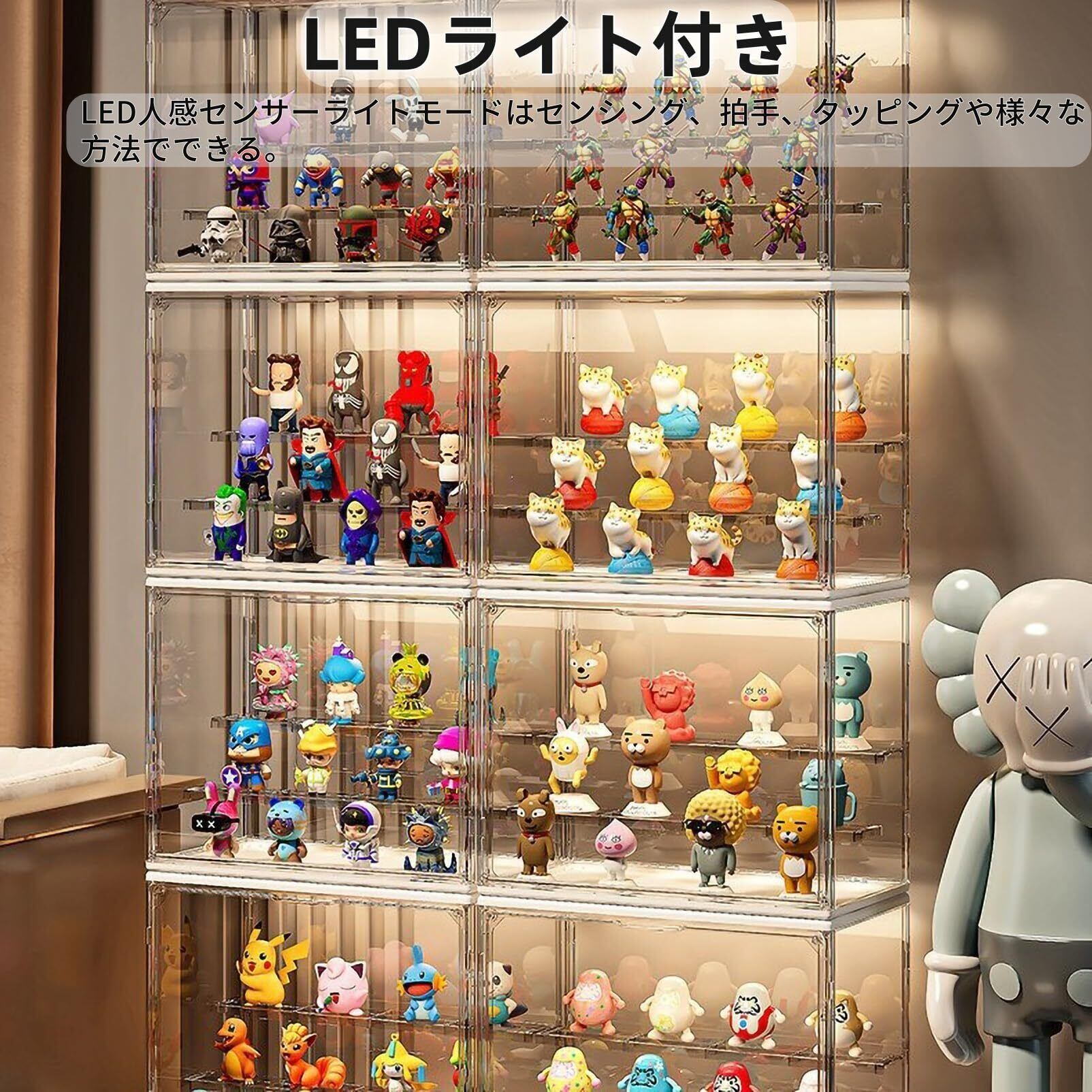 【LED照明フィギュアケース】 LED 機能搭載 上から光が当たり、ケース内のコレクションがよりリアルに映える。人感センサーモードはスイッチ操作・手拍子・叩く動作などで簡単起動 30秒後に自動的に消灯、いつでも点灯可能。上下のタンデムデザイン、1本のワイヤーで複数のスタッキングが可能。ご注意ください!属のデータケーブルをご使用ください。