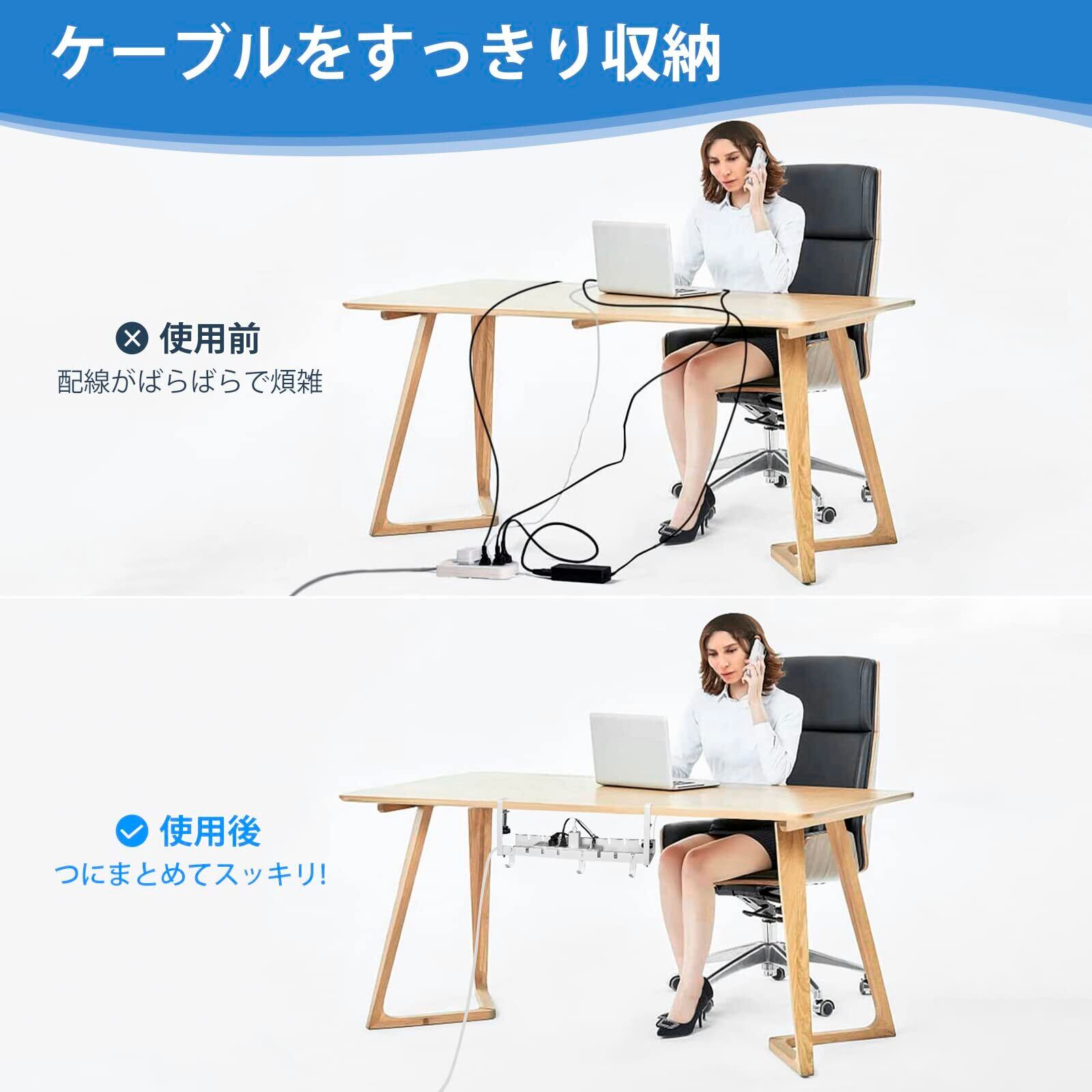【省スペースデザイン】ケーブルトレーを効果的に整理し、プラグやルーターなどの機器をデスクの下に収納することで、デスクをより効率的にご利用いただけます。たとえば、キャビネットの下の調味料収納ラックとして使用したり、テーブルの前に置いてイヤホン充電ケーブルなどの小物を収納したりできます。事務所の掃除、ケーブル収納と配線 整理が簡単になります。