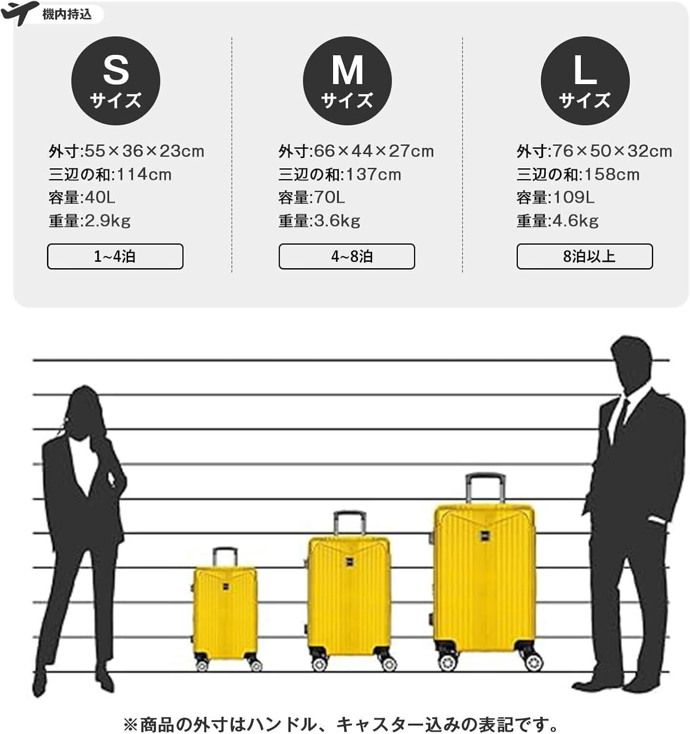 スーツケース キャリーケース キャリーバッグ 製ファスナー 拡張機能 ストッパー付きキャスター TSAダイヤル式ロック 振動軽減 軽量 大容量 静音 乾湿分離ポケットつき スーツケースベルト付き 物掛けフック式底足 ファスナータイプ 旅行 ビジネス 出張 学生用キャリーケース (イエロー, S)