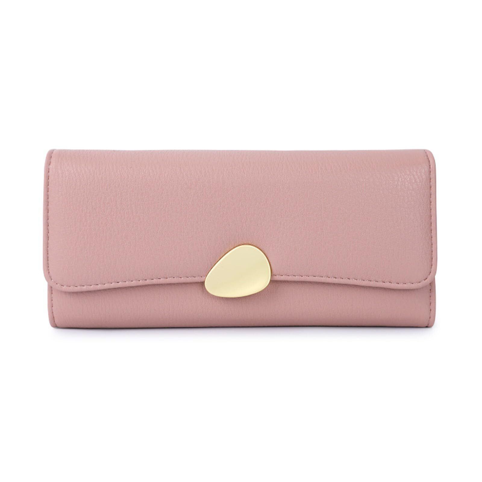Mokoze 財布 レディース クラッチウォレット ジップポケット付き 大容量 PUレザー 三つ折り財布 ギフトや日常生活やビジネスシーンに最適なアクセサリー, ピンク, ミニマリズム