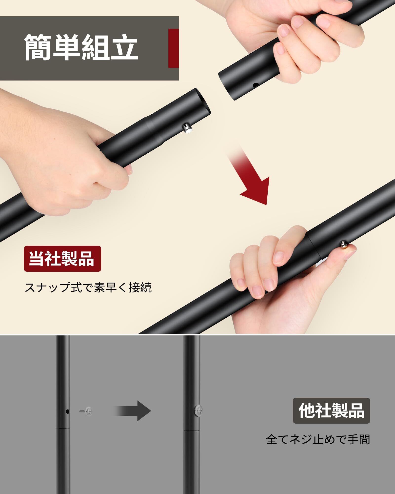 頑丈な構造:固定式の伸縮ポールを備えたこのコートハンガーは、長期間使用してもぐらつきや緩みを防ぎ、衣類をしっかり支える安定構造です。サイドポールが掛け容量を増やし、フレームを補強して耐荷重性を高めます。