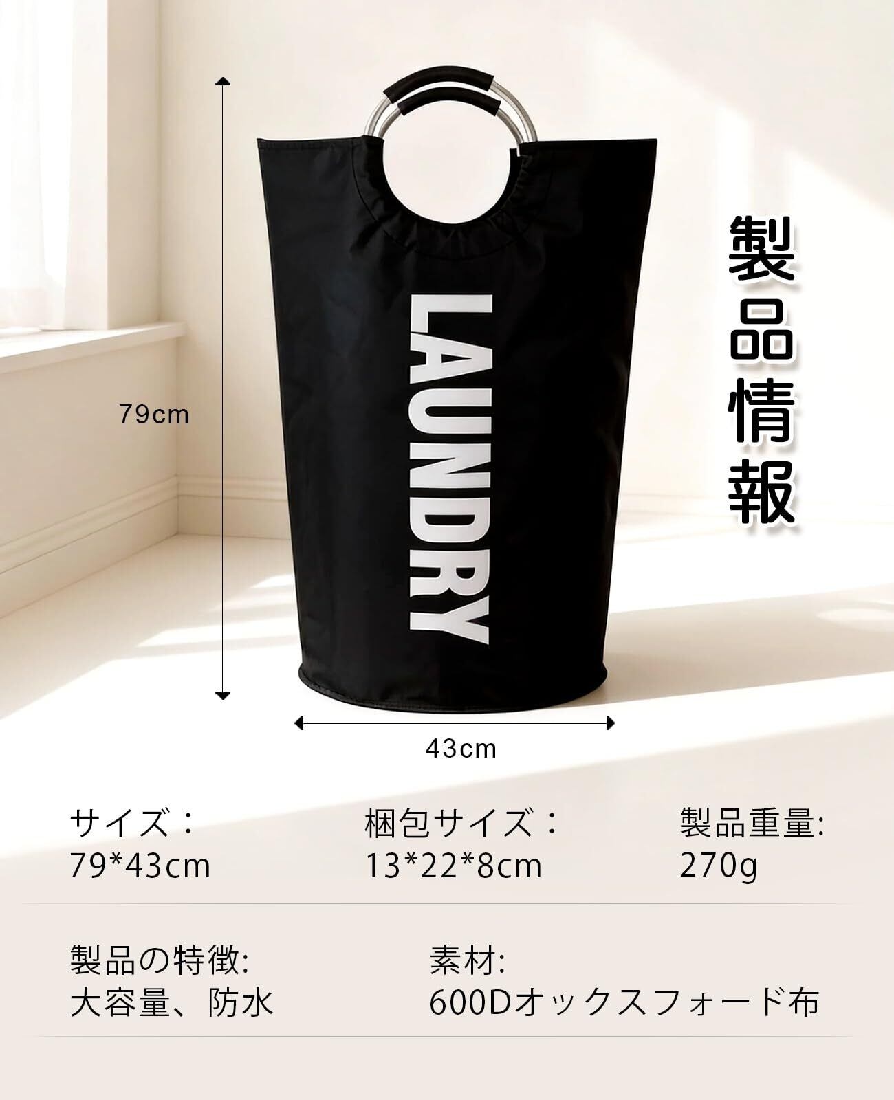 【洗濯中も安定・倒れにくい自立設計】洗濯物を入れるたびに倒れてしまうストレスを軽減。しっかり自立する構造で、脱衣中や洗濯前後の出し入れもスムーズに行えます。