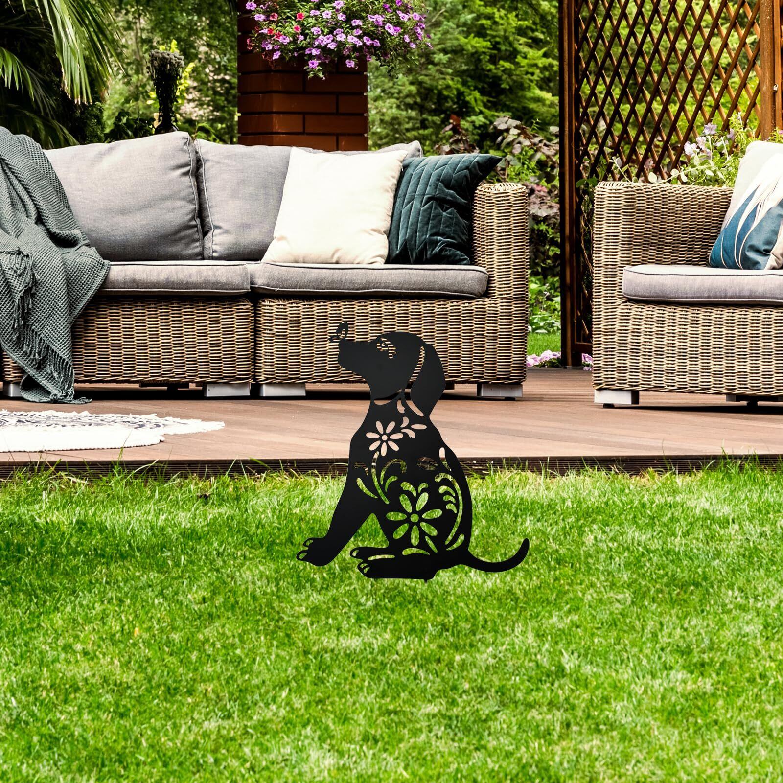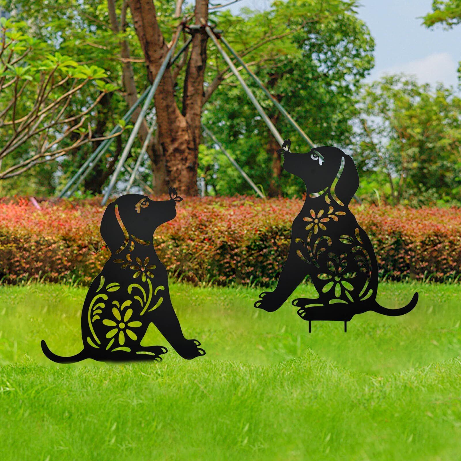 MrMrKura ガーデニング雑貨 犬 金属製 ガーデン 飾り プレート 犬 ガーデン置物 ガーデンオーナメント ドッグ 透かし彫り 鉄製 屋外 ガーデンオブジェ 園林 園芸用品 芝生 お洒落 北欧 シルエット 屋根 インテリア (1匹犬)
