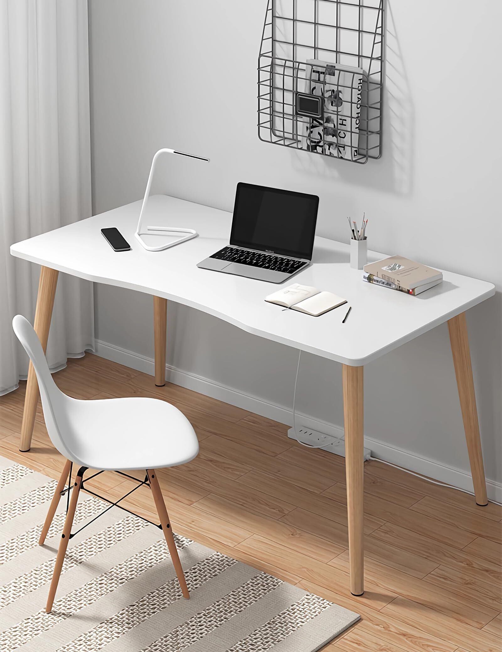 デスク パソコンデスク 勉強机 北欧 木製 机 幅80cm×奥行50cm PCデスク 在宅勤務 リモートワーク用 おしゃれテーブル シンプル 化粧台 作業机 仕事用 組立簡単 (幅80cm, 白い)