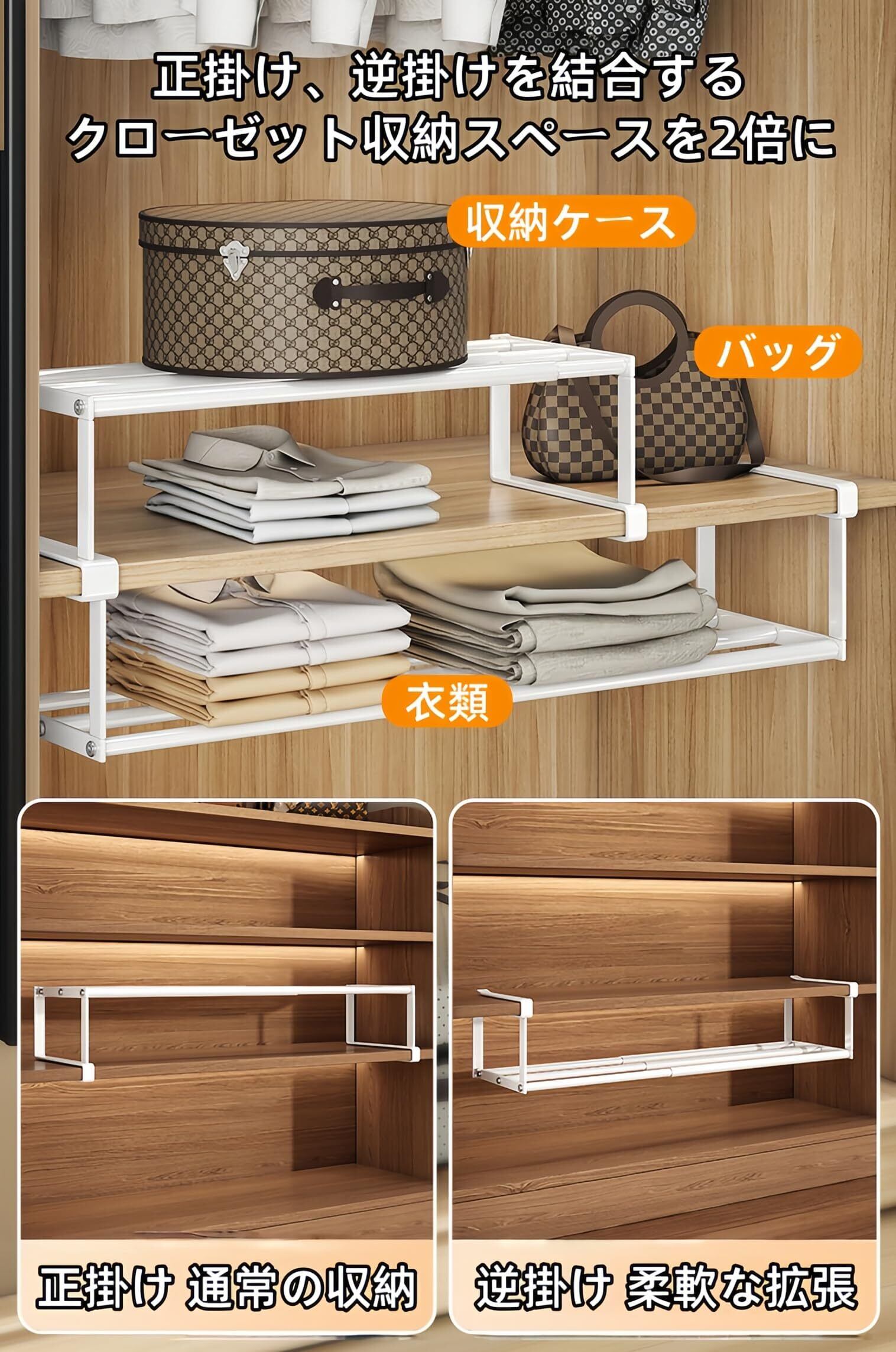 [優れた伸縮機能] 棚板の幅が40cmから70cmまで伸縮可能!ご家庭の靴箱やクローゼットのサイズに合わせて自由に調整でき、無駄なスペースを最大限に活用します。自由に拡張でき、様々なキャビネットに適応し。