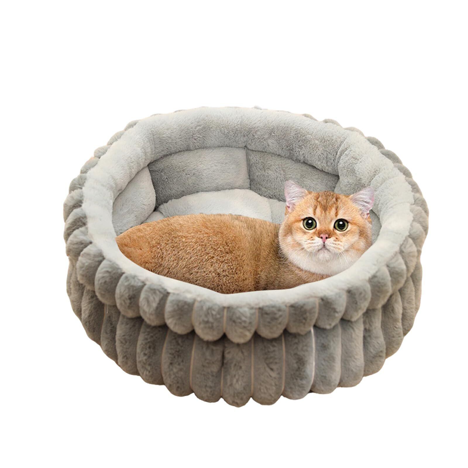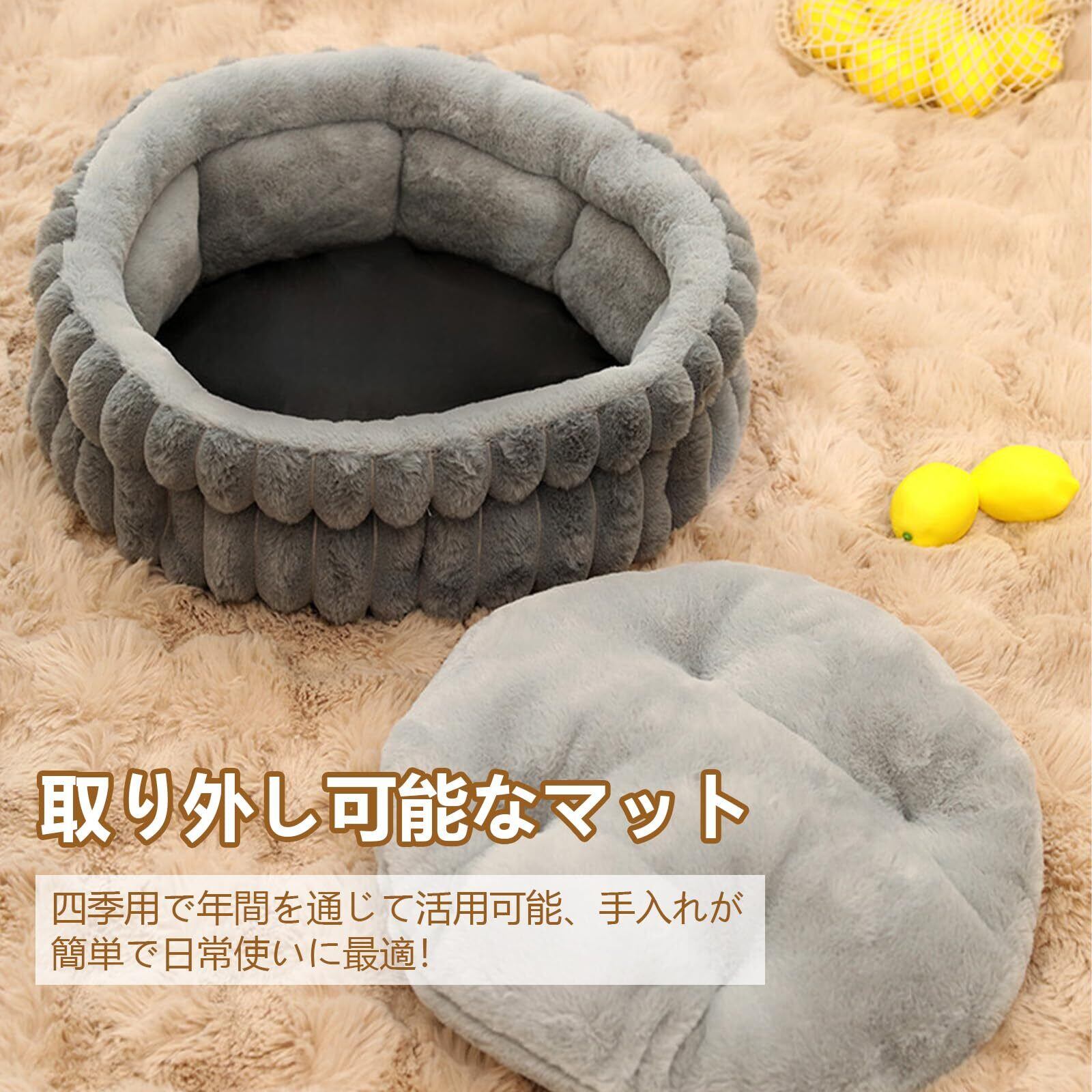 犬 猫ベッド 秋冬 直径50cm クッション ペットベッド ふわふわ 暖かい 丸型 滑り止め 洗濯可能 取り外し可能マット キャットベッド 寝床 起毛 ペットマット 犬猫兼用 高さ25cm